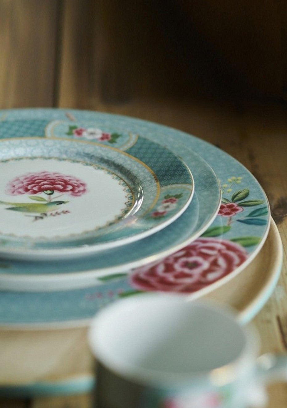 This blue underplate is richly decorated with exotic flowers, birds and golden details. The background has an elegant design. Combines beautifully with the other dinner sets in the Blushing Birds collection. Underplate, Diameter: 32 cm, Golden details, Made of delicate porcelain