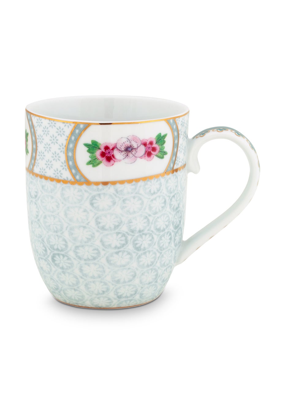 This fine porcelain mug is decorated all around with a small print, pink flowers and golden details. Combines beautifully with the other porcelain sets in the Blushing Birds collection. Capacity; 145ml.