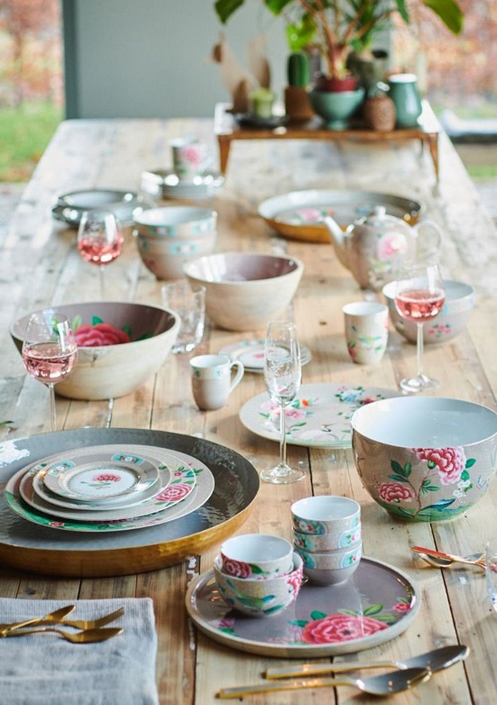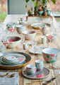 These khaki porcelain mugs are decorated all around with exotic flowers, a bird and golden details. The large pink flower extends slightly over the edge and the background has an elegant design. Combine beautifully with the other porcelain sets in the Blushing Birds collection. Large mugs, Capacity: 350 ml, Golden details, Made of delicate porcelain