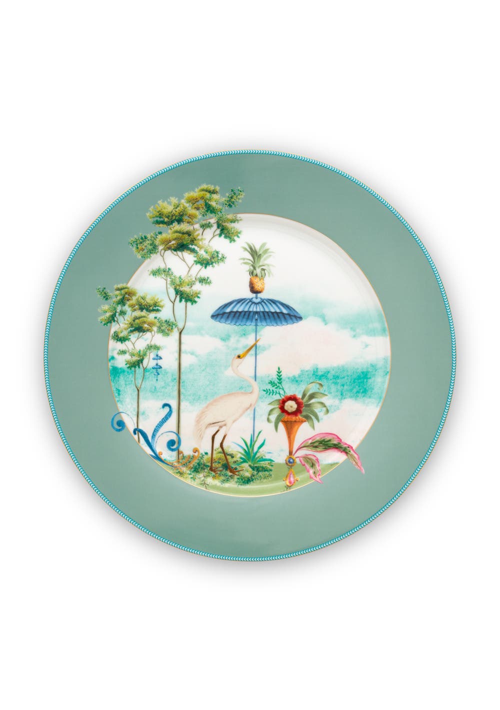 Having a dinner with the family or with friends? This dinner plate is perfect for a stylish dinner. The plate has a blue and skyblue background with golden dots and is decorated with excotic plants in the centre. You will imagine yourself in a world full of nature when looking at this design. Perfect to combine with the other plates of the Jolie collection. For example: combine this plate with one of the breakfast plates for a chique look. 32cm