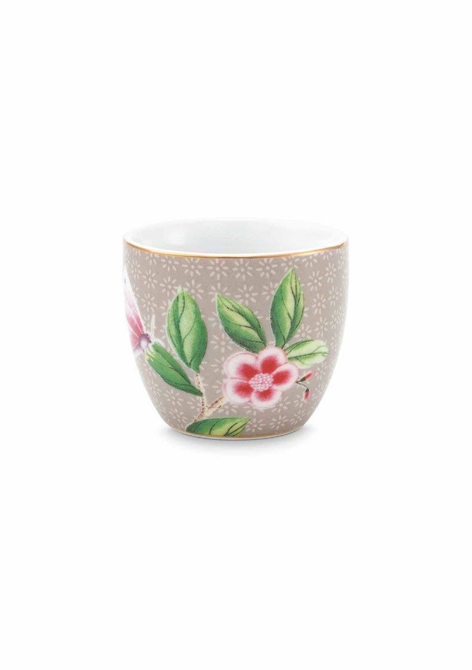 This egg cup is decorated with an elegant print, pink flower, butterfly and golden details. The inside is decorated with an element from the design. Combines beautifully with the other porcelain sets in the Blushing Birds collection.