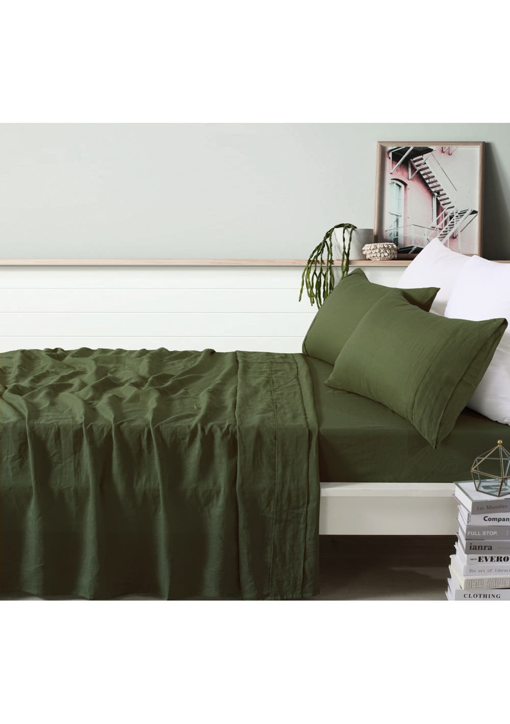 Vintage Design - Olive French Linen Sheet Set- Single Bed