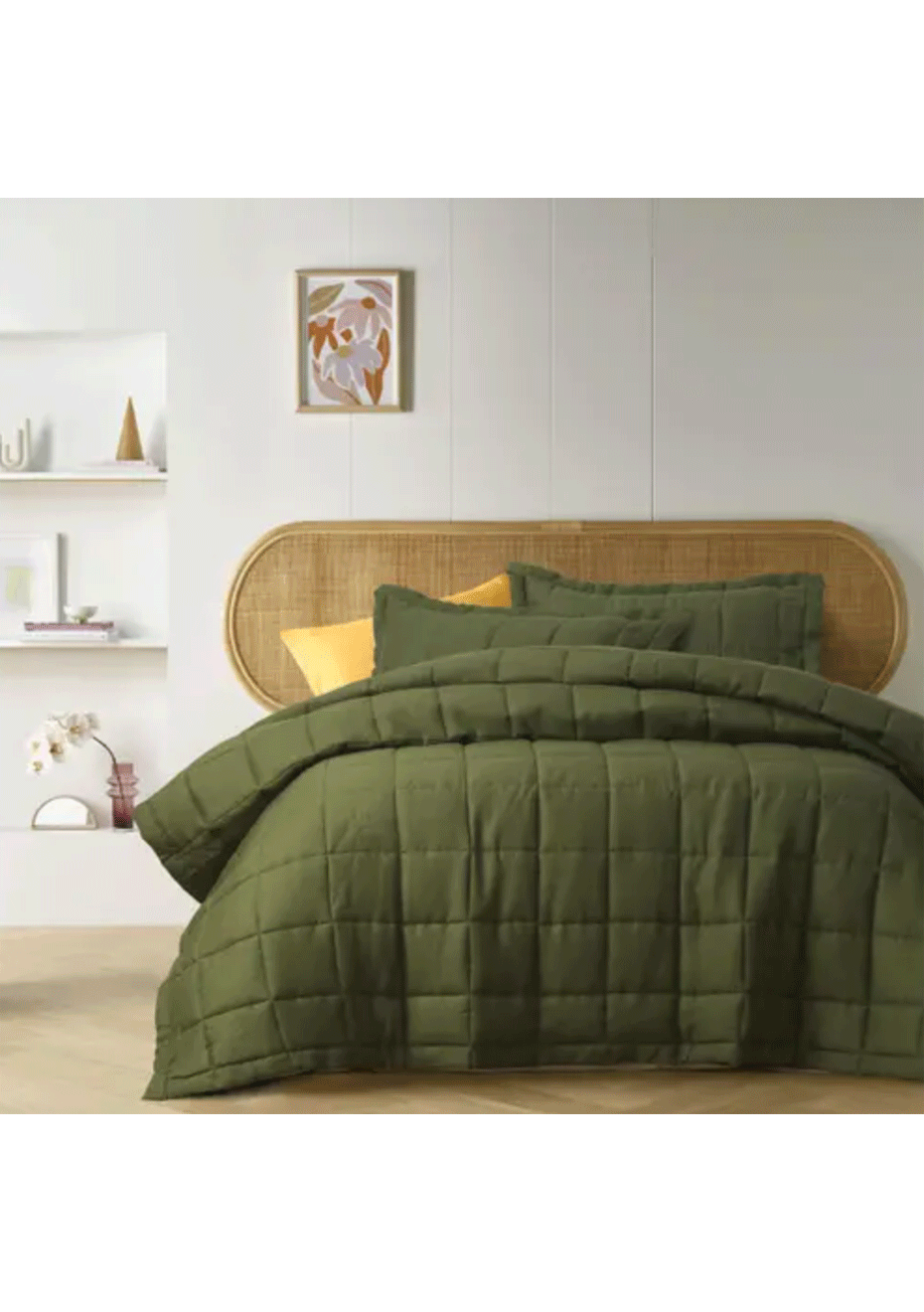 Layer your bed in style with our Vintage Design French linen coverlet set. Enjoy pure luxury, and bring a sense of peaceful elegance to your bedroom. Linen is naturally highly absorbent and breathable, keeping your body at the ideal temperature throughout the night. This coverlet set comes with 2 quilted pillowcases.