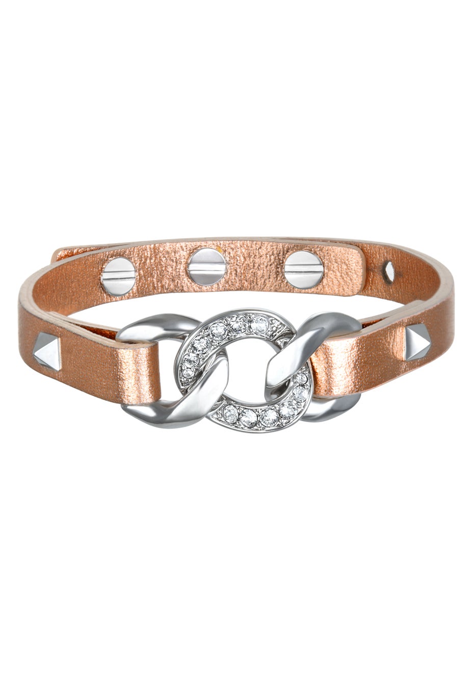 Karl Lagerfeld Filed Chain Leather Rhodium Bracelet