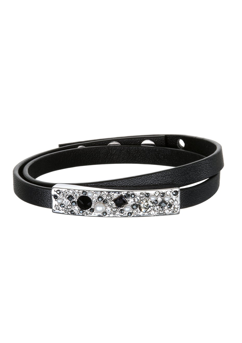 Karl Lagerfeld Scattered Cry Leather Wrap Rhodium Bracelet