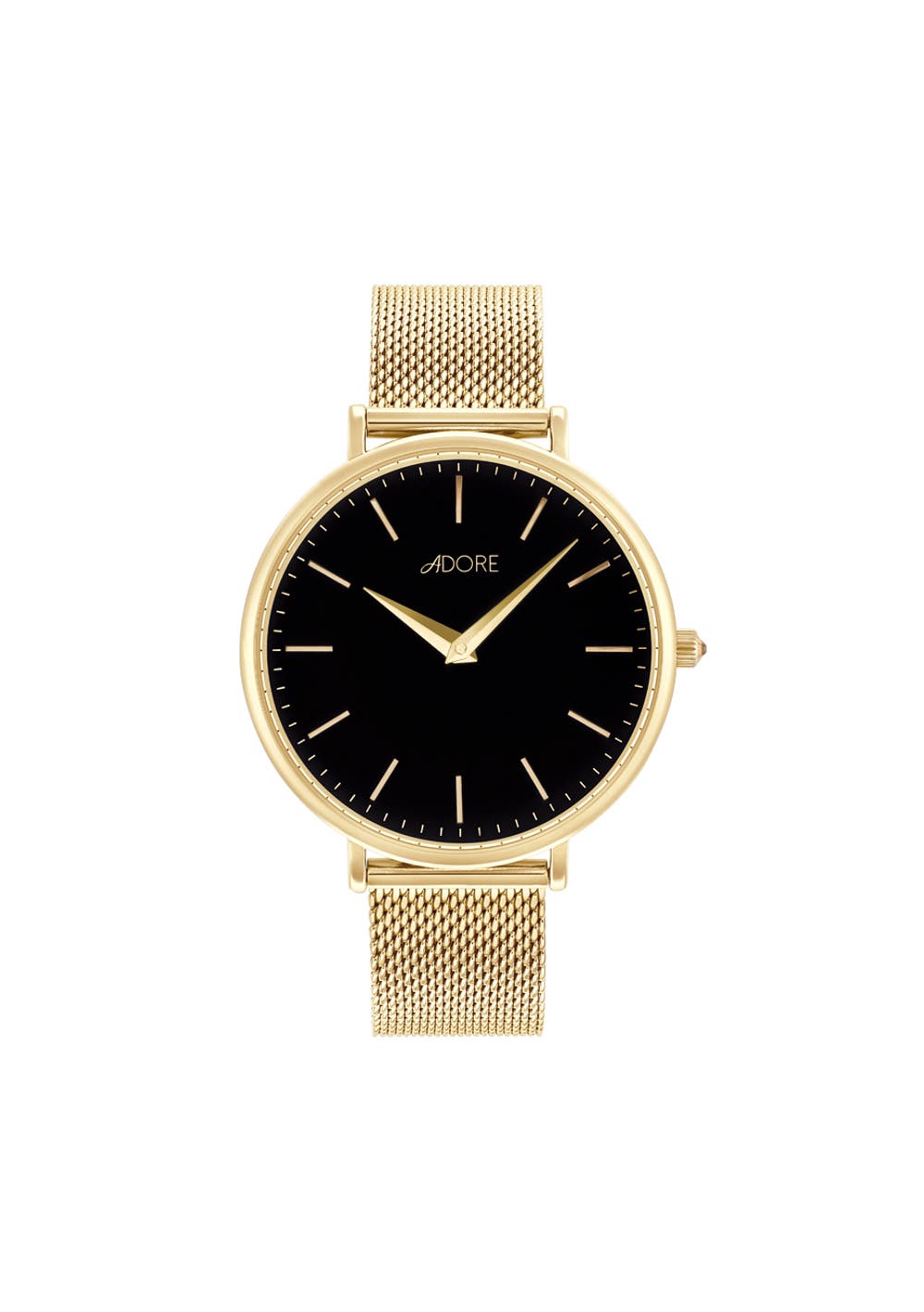 Adore Shimmer Collection Gold Case Black Dial Gold Mesh Watch
