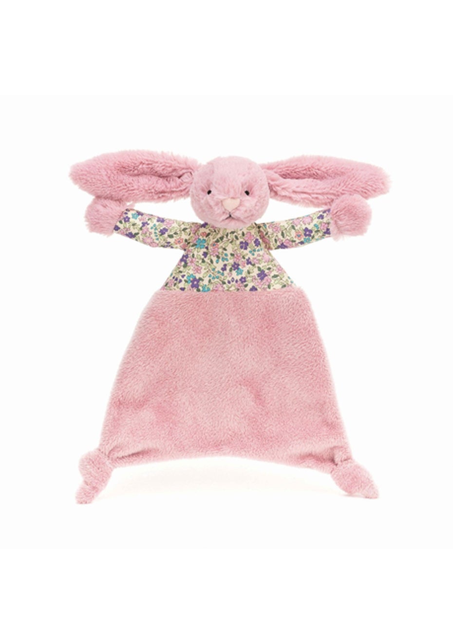 For petal-soft snuggles and timeless charm, we adore Blossom Tulip Bunny Comforter! With a yummy pink tummy, chompy knotty feet and a supercute cotton top covered in flowers, this sherbet fuzzy is so very holdable, with long ears fluttering all the way home!