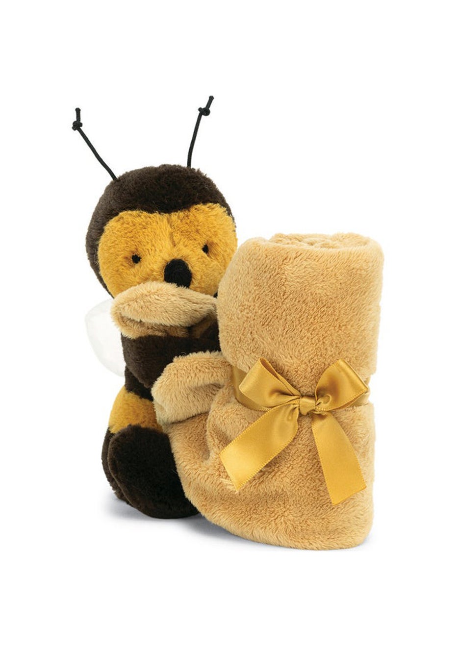 This adorable baby soother is sure to become baby's favourite. It's a honeycomb dream in scrummy-sweet golden fur. The bright-eyed bee is standing guard, looking after sleepyheads. Stripey, silly and summery, with stretchy feelers and a bobble body, this little bug is a bedtime bud.