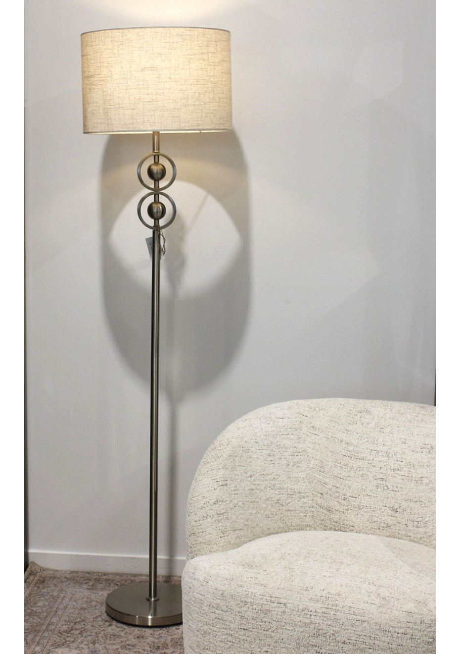 Introducing the Santa Fe Floor Lamp, a marvel in modern design. Its brushed nickel body exudes luxury, while the light brown shade made from high-grade fabric creates a warm, comforting ambience. Illuminate your living space with the exquisite Santa Fe Floor Lamp. Colour: Brushed Nickel Body And Light Brown Shade Material: Metal Body And Fabric Dimensions: Diameter: 38 x Total Height: 157cm