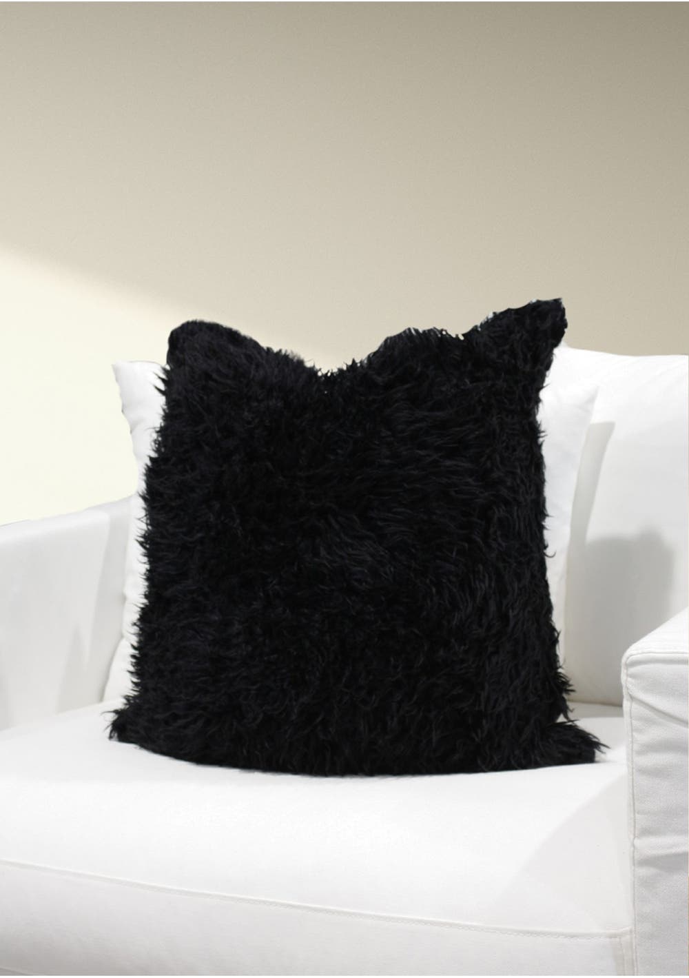 Black Fluffy Wool Cushion Cover