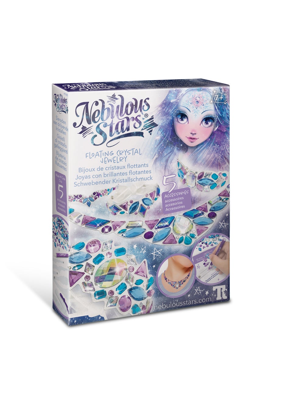 Crystallize your style! Make 5 marvelous necklaces and bracelets out of colorful crystal gems. Just stick the gems onto the transparent adhesive sheets following the pattern to create the illusion that the gems are floating over your skin!