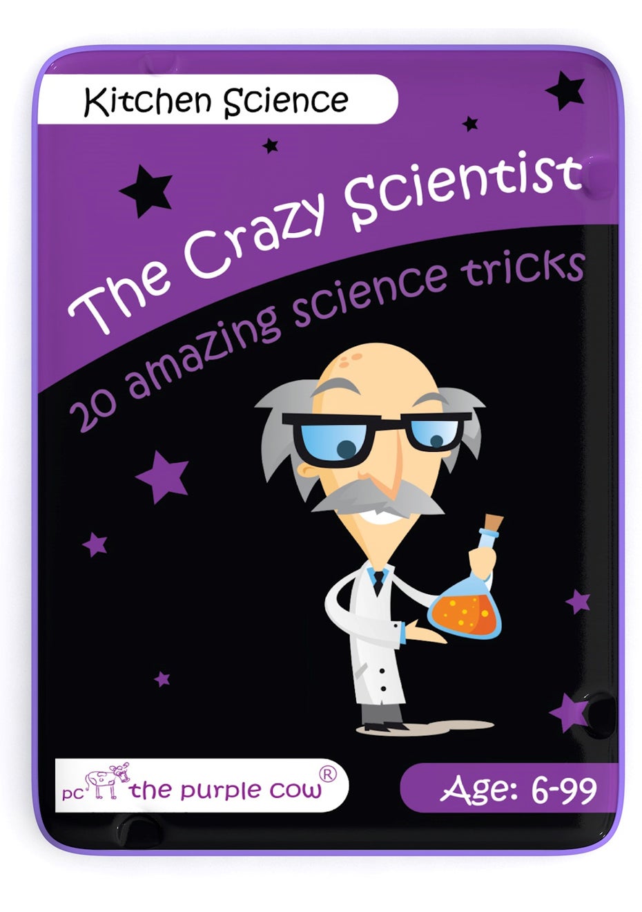 20 exciting magical science experiments around the kitchen incl.a green sunny-side-up egg; the balloon with a skewer stuck within and much more!  Suitable for ages 6+'The Crazy Scientist' series, a collection of science tricks, was created by a joint venture of 2 crazy scientists and the 'Purple Cow'. A combination bound to create an excellent and yet crazy experience! Each science trick comes with a simple and yet clever scientific explanation. Some magic tricks may require adult supervision as indicated. They are nothing short of a breakthrough in the transfer of S.T.E.A.M. love to kids.  The beautiful thing about them is that they all use common household materials