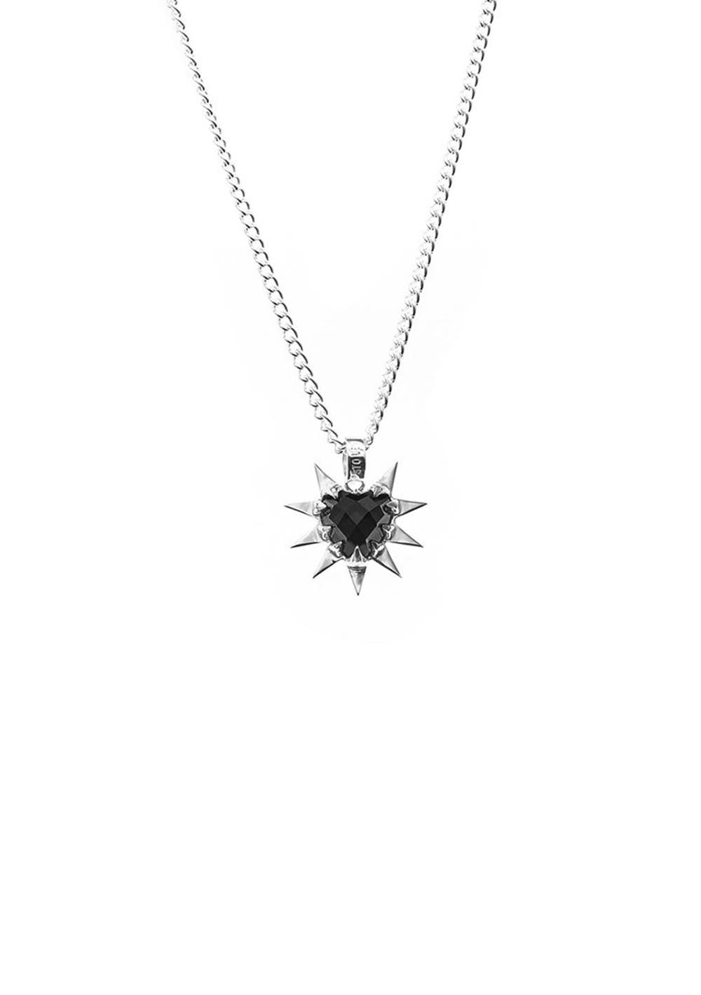 Love Kills is inspired by razor blades, spikes and barbed wire, protecting all that is delicate. It’s for the ones that have loved, and also the ones that have lost. Rebellious Heart Necklace crafted in high polish 925 sterling silver with an Onyx spiked heart pendant.