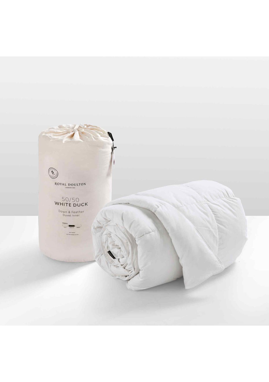 Offering everyday luxury, the new Royal Doulton 50/50 white duck down and feather duvet inner would be a great addition to your bedroom space. Using a crisp white 290thread cotton japara outer casing and generously filled with 50% white duck down and 50% white duck feather. The feather and down are great partners, the down forms pockets, trapping warm air around your body and the feathers add bulk for a light and lofty inner. Finished with self-piping and box quilting, these inners offer a medium level of warmth and therefore are ideal for year round use. They can be easily used on their own during the warmer months, or warmer climates, and can be easily combined with your favourite extra layer of warmth during the colder months. This product is Responsible Down Standard (RDS) certified. Products certified to the RDS contain down and feathers from farms certified to animal welfare requirements. Also available in Queen size. Dryclean only. Made in China.