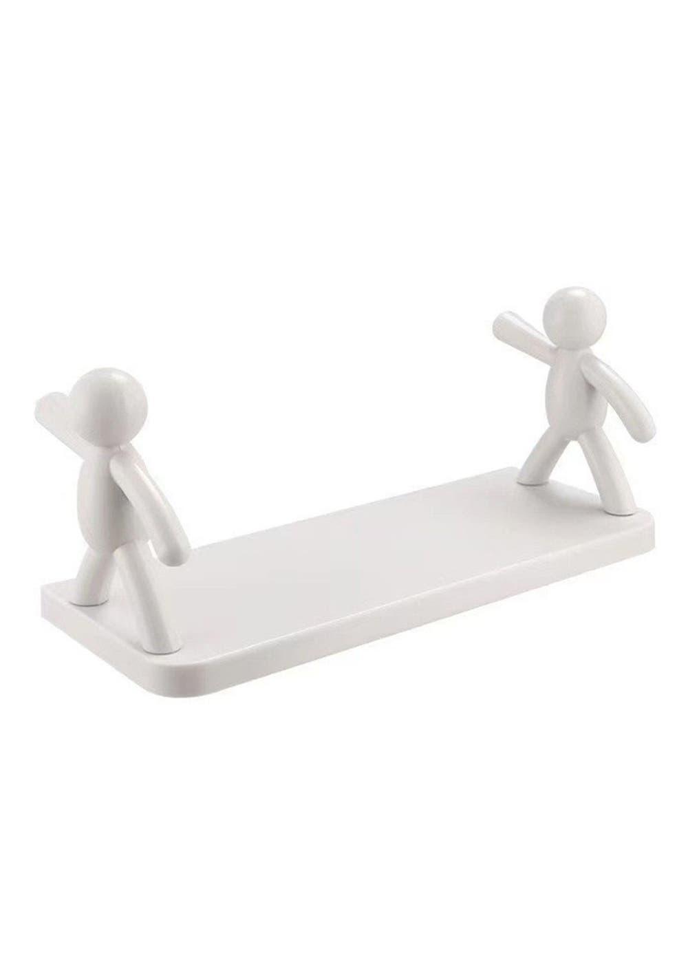 Product Description: Maximize your bathroom space with this Wall-Mounted Human-Shaped Guardrail Hook Storage Rack. Crafted from high-quality PP material, this wall hanging rack ensures exceptional durability. Once installed, the floating storage shelves provide remarkable sturdiness, capable of securely holding heavier items.With its adhesive backing, this bathroom shelf eliminates the need for punching, nails, or drills, making it easy to disassemble without causing any damage to the wall. Simply peel off the adhesive backing and affix it to a smooth or flat surface, such as smooth walls, wood, metal, tile, ceramic, or plastic.These floating wall shelves offer additional storage in various areas of your home, including the bathroom, guest bathroom, bedroom, kitchen, and living room. They not only provide practical storage but also add a touch of charm to your wall and house decor. Simplify your life with this versatile storage solution.Featuring a unique humanoid bracket design, this storage rack seamlessly blends with contemporary styles, adding an attractive decorative element to any design aesthetic.The simple yet functional design is perfect for organizing and storing items such as soap, bath bottles, candles, toilet paper, spice bottles, and more. The hooks on both sides of the little man design allow for hanging additional items. Make the most of your space with this efficient storage solution. Assembly is a breeze with the included instructions, requiring only 5-10 minutes to complete without the need for punching holes.?Product Specification:Color: White, GreyWeight: 370gMaterial: PlasticSize: 32 x 12 x 14cmFunction: Wall-Mounted Storage RackPackage Inclusion:1 x Storage Rack2 x Sticky Hooks