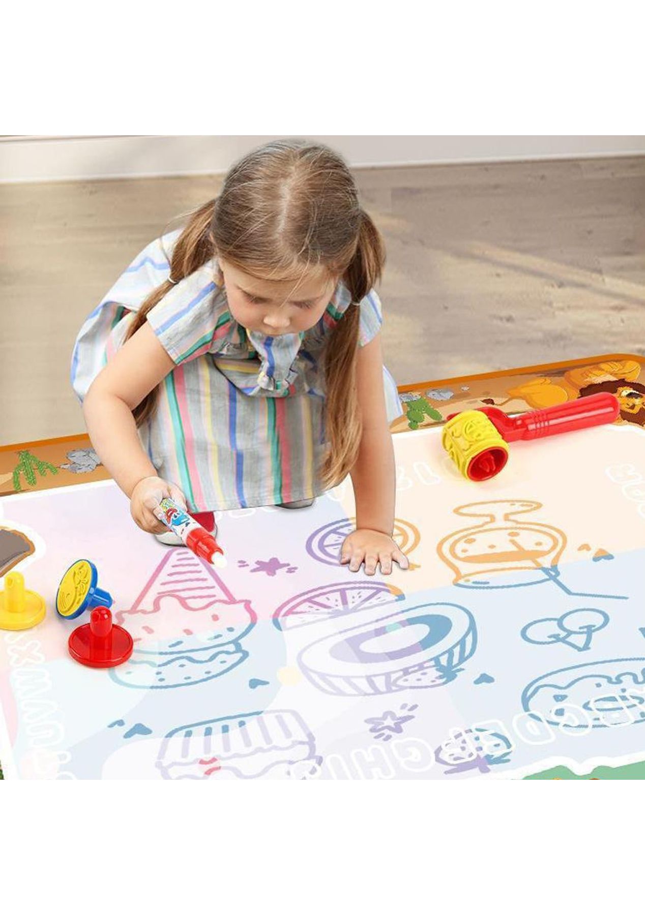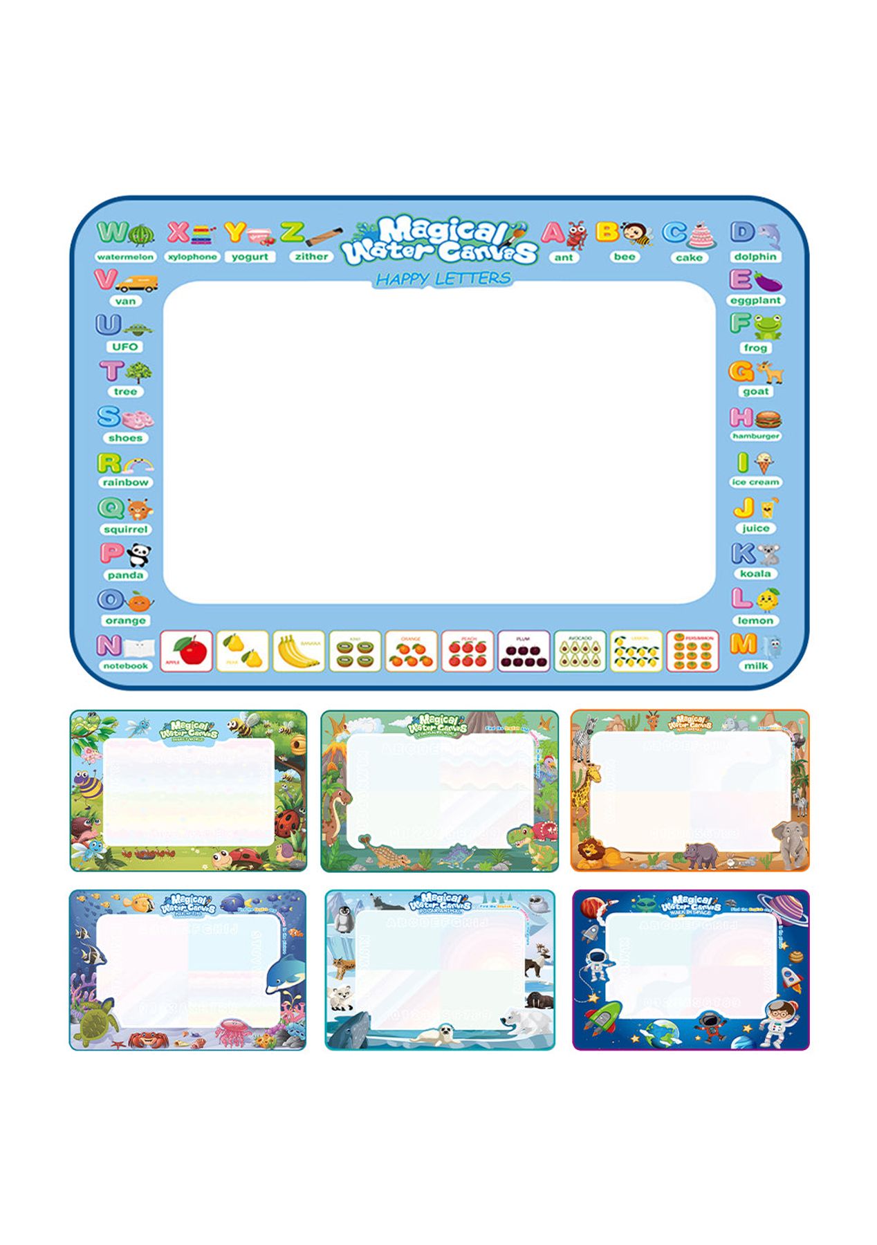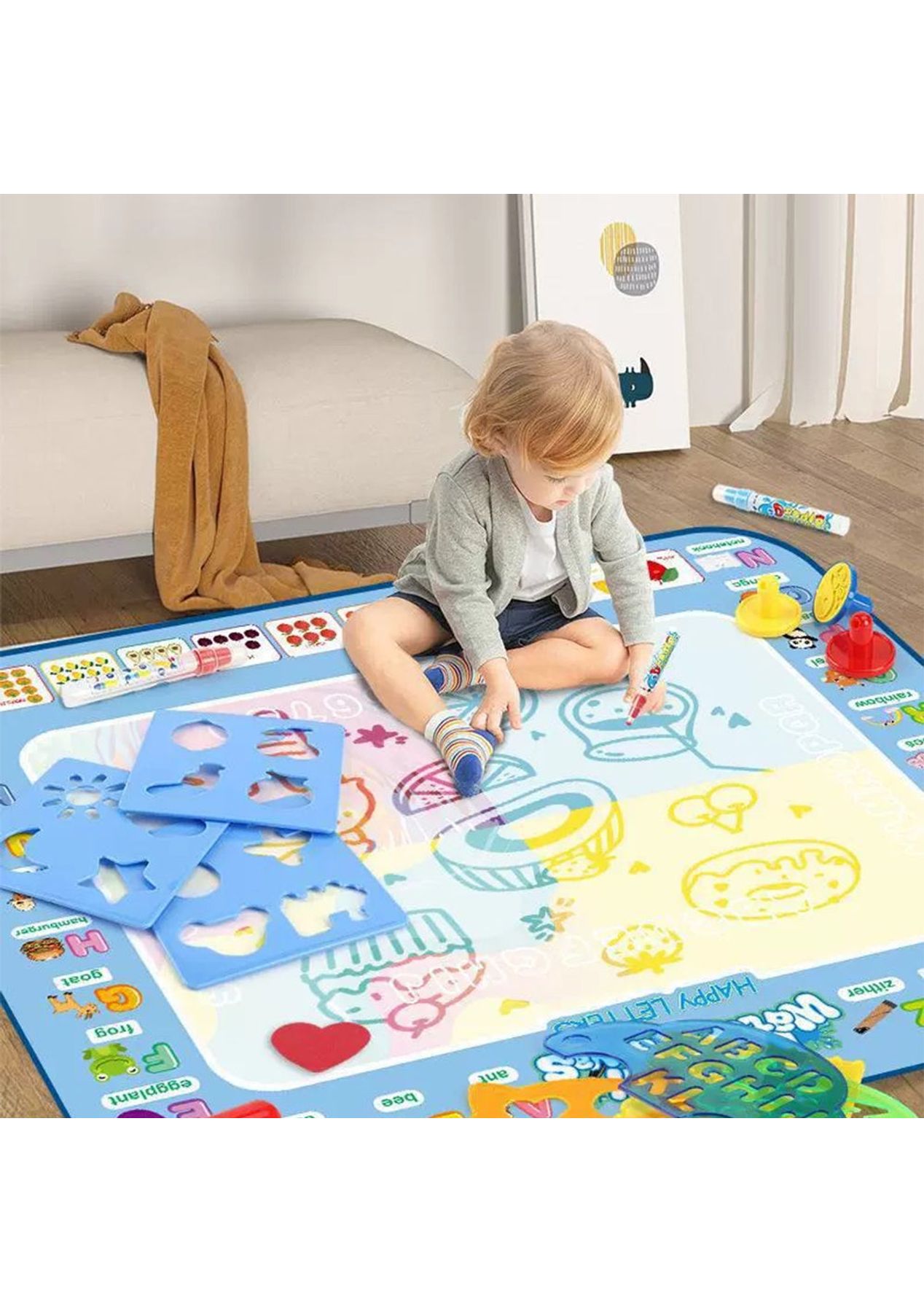 Product Description: Forget about the hassle of ink, paint, or crayons! With the clean water charm pen, your little artist can create vibrant masterpieces on the water doodle mat. Watch the magic happen, and after 5-10 minutes, the artwork disappears, ready for a new canvas.Nurture your child's artistic talents while enhancing hand-eye coordination and color perception. The water doodle drawing pad is both entertaining and educational, making it the perfect tool for creative development.The water doodle mat is made of durable polyester fabric that can be drawn on repeatedly with water pens, without wasting paper or ink.The foldable design ensures easy transport in your backpack, making spontaneous drawing sessions possible wherever and whenever inspiration strikes. Encourage creativity on the go with the portable water doodle drawing pad.The water doodle mat is a perfect tool for more doodling, painting and sketching without the mess of traditional coloring tools. Let your kids' creativity fly with this fun and easy way.It is perfect for birthdays and special holidays. With hours of entertainment using just water, it's a thoughtful and enjoyable present for any occasion.?Product Specification:Material: polyester fabricColor: MulticolorSize: 100 x 80 cmWeight: 450gFunction: Water Doodle MatAge: 4+?Package Inclusion:1 x Mat 3 x Pens 1 x Painting Album 2 x Models 1 x Seal Set