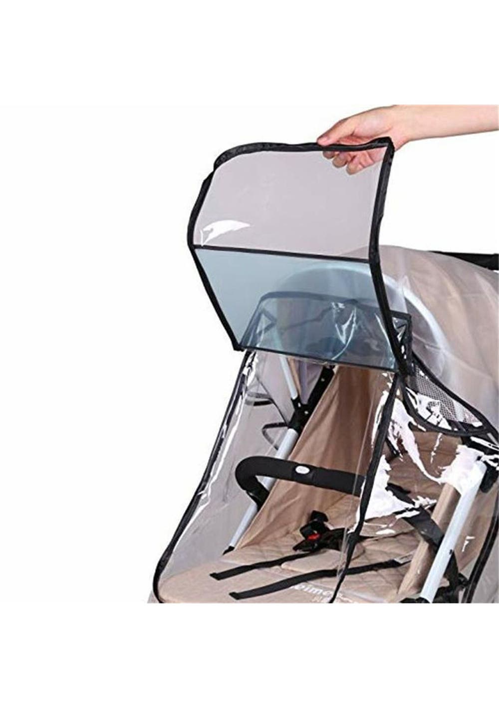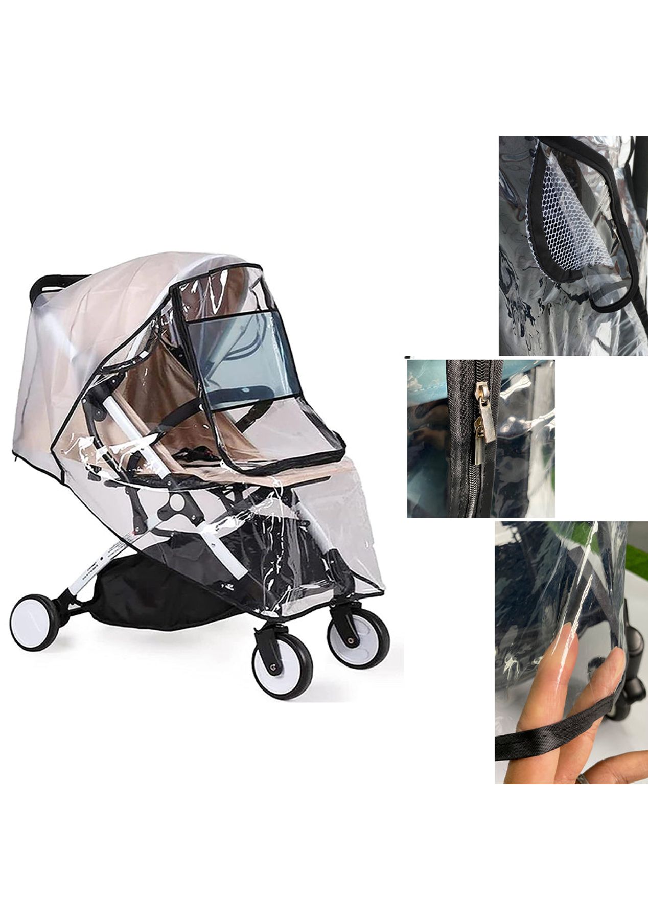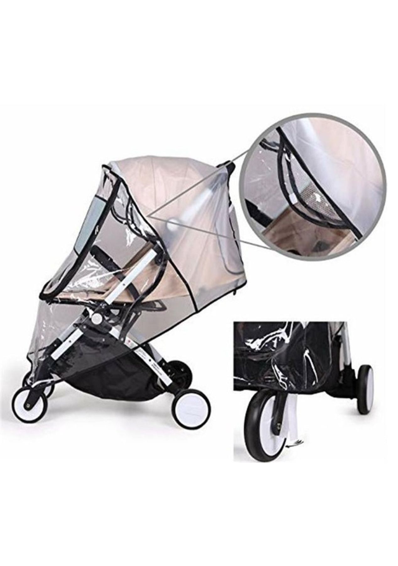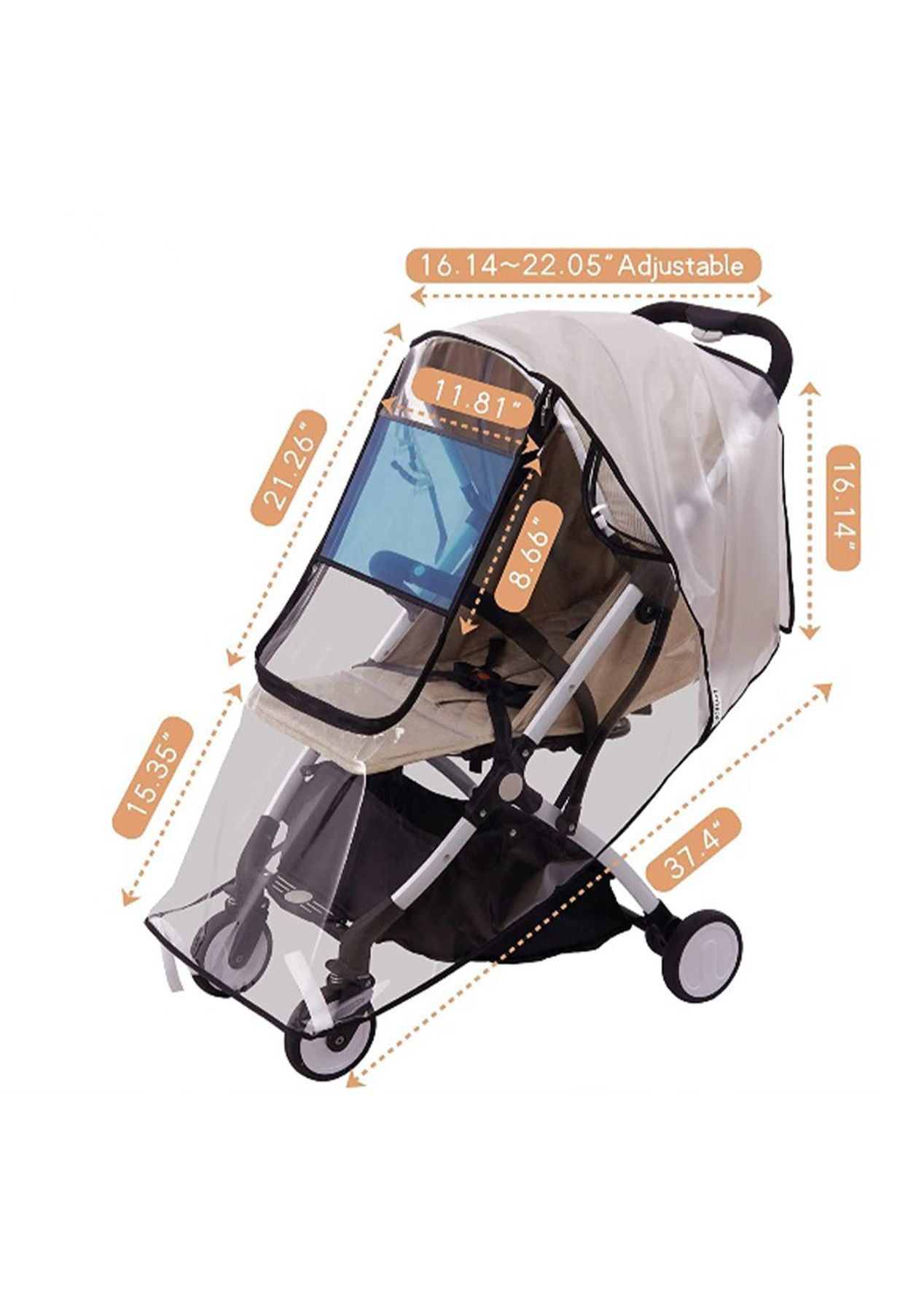 Product Description: Universal Stroller Rain Cover is made of EVA thin film which can be used directly for food packaging, it is non-toxic and environmentally friendly. The material is very smooth and soft to touch It is a must-have item for parents to travel with their babies, which can protect your baby from rain, snow, wind, dust and give them the best care in a safe environment.?The mesh holes on each side are a nice addition for breathability, and ventilation holes in the right place, the air gets in to give baby enough fresh air to breath and feel comfortable.?With the see-through large window, it is great for baby lift in and out of stroller, and also show perfect vision.?Waterproof zipper to stop rain from seeping in, and Velcro straps in the front to keep the rain cover fixed on the stroller, without afraid the wind and rain.?You just put the rain cover on the stroller and fasten it to the stroller with Velcro. This stroller rain cover is designed to fit most standard-sized single baby strollers, jogging strollers and prams. (Note: This product maybe too big for compact/umbrella type strollers).Product Specification:Color: BlackWeight: 370gMaterial: EVASize: Top Width: 45cmFront Length: 86cmBack Length: 43cmFunction: Universal Baby Stroller Rain CoverPackage Inclusion:1 x Stroller Rain Cover