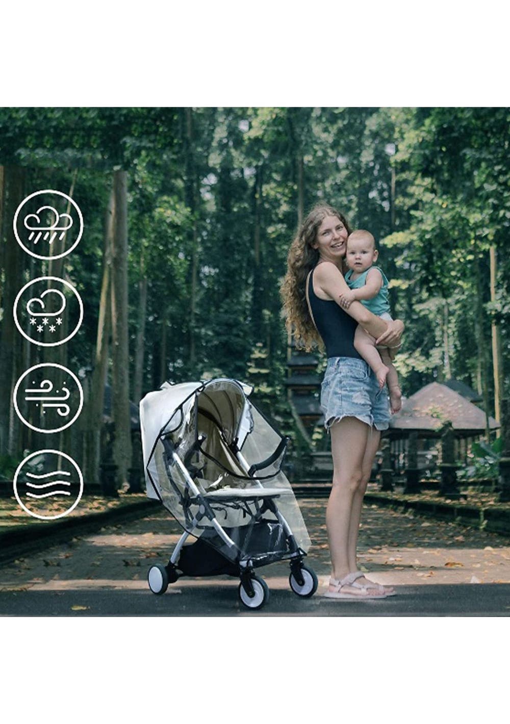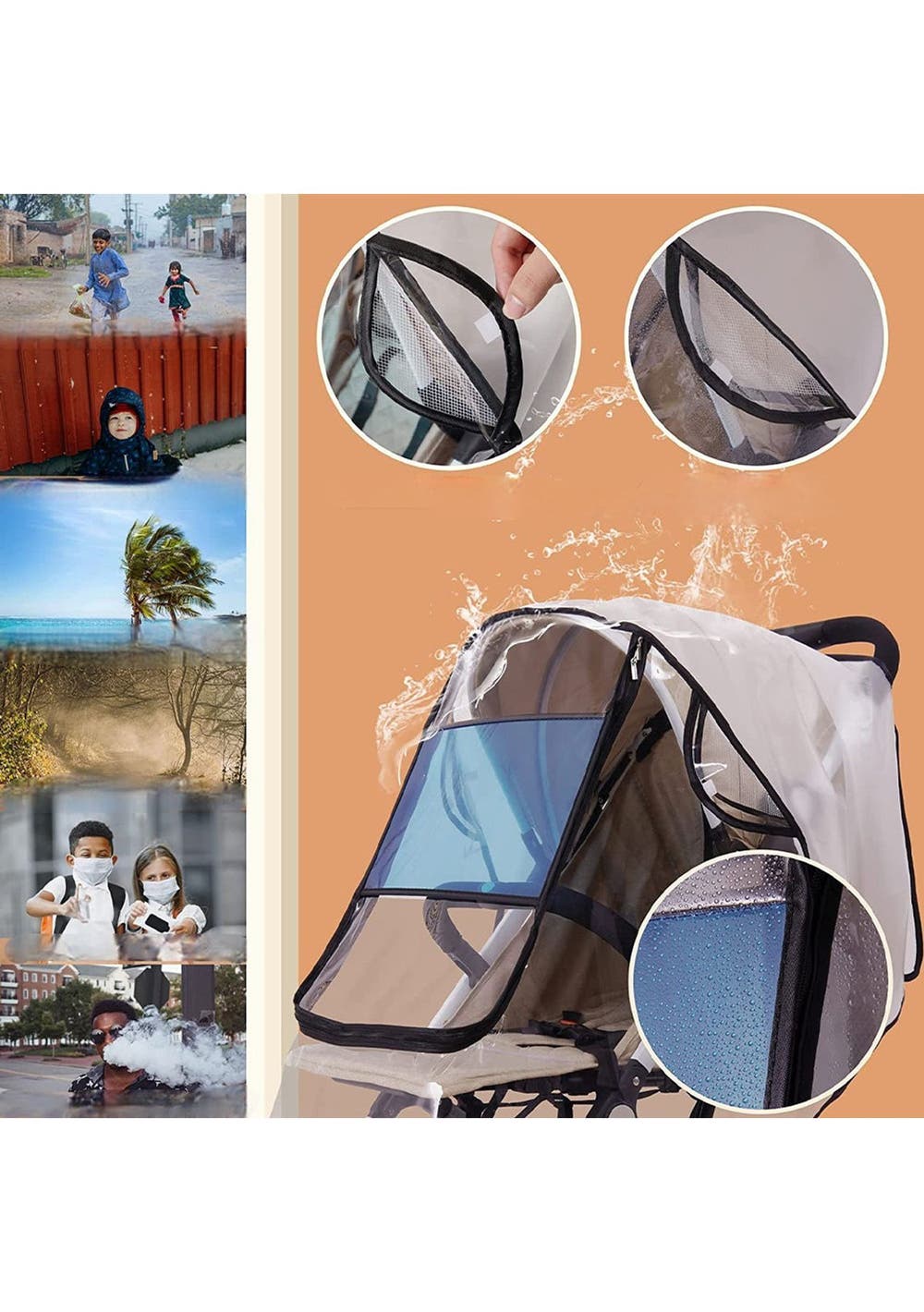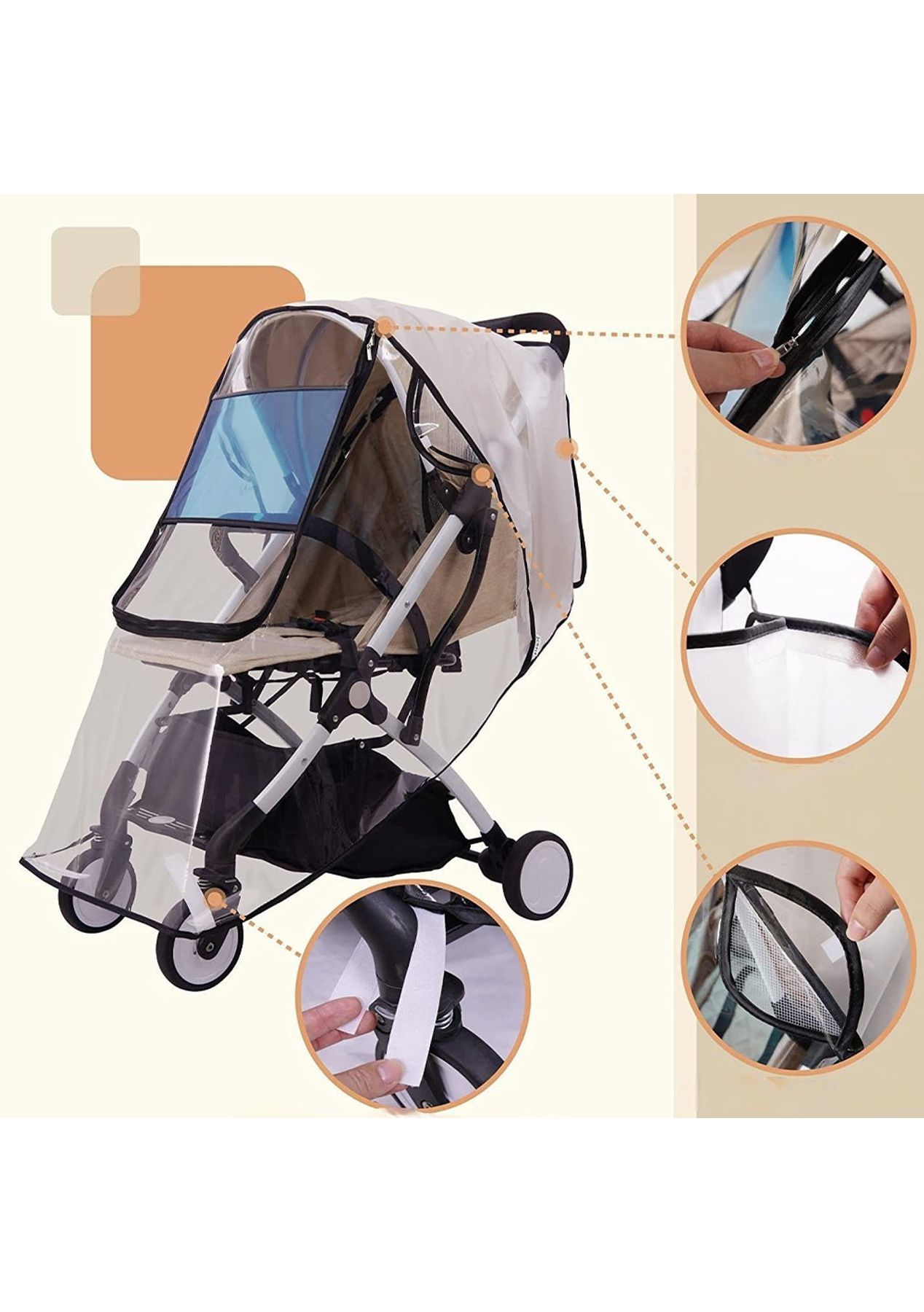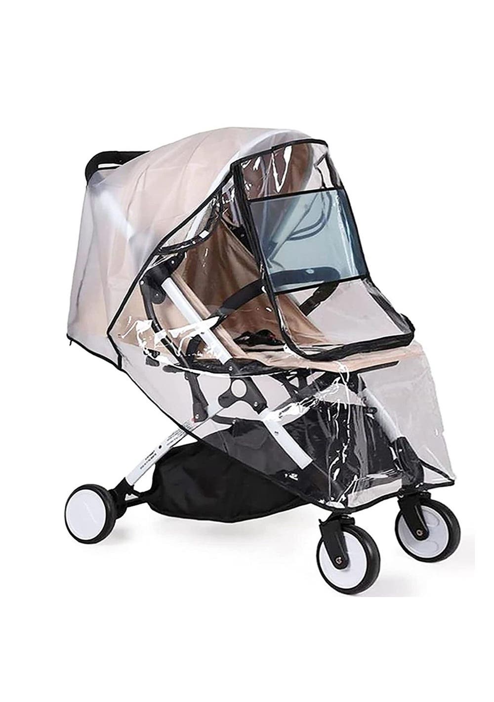 Product Description: Universal Stroller Rain Cover is made of EVA thin film which can be used directly for food packaging, it is non-toxic and environmentally friendly. The material is very smooth and soft to touch It is a must-have item for parents to travel with their babies, which can protect your baby from rain, snow, wind, dust and give them the best care in a safe environment.?The mesh holes on each side are a nice addition for breathability, and ventilation holes in the right place, the air gets in to give baby enough fresh air to breath and feel comfortable.?With the see-through large window, it is great for baby lift in and out of stroller, and also show perfect vision.?Waterproof zipper to stop rain from seeping in, and Velcro straps in the front to keep the rain cover fixed on the stroller, without afraid the wind and rain.?You just put the rain cover on the stroller and fasten it to the stroller with Velcro. This stroller rain cover is designed to fit most standard-sized single baby strollers, jogging strollers and prams. (Note: This product maybe too big for compact/umbrella type strollers).Product Specification:Color: BlackWeight: 370gMaterial: EVASize: Top Width: 45cmFront Length: 86cmBack Length: 43cmFunction: Universal Baby Stroller Rain CoverPackage Inclusion:1 x Stroller Rain Cover