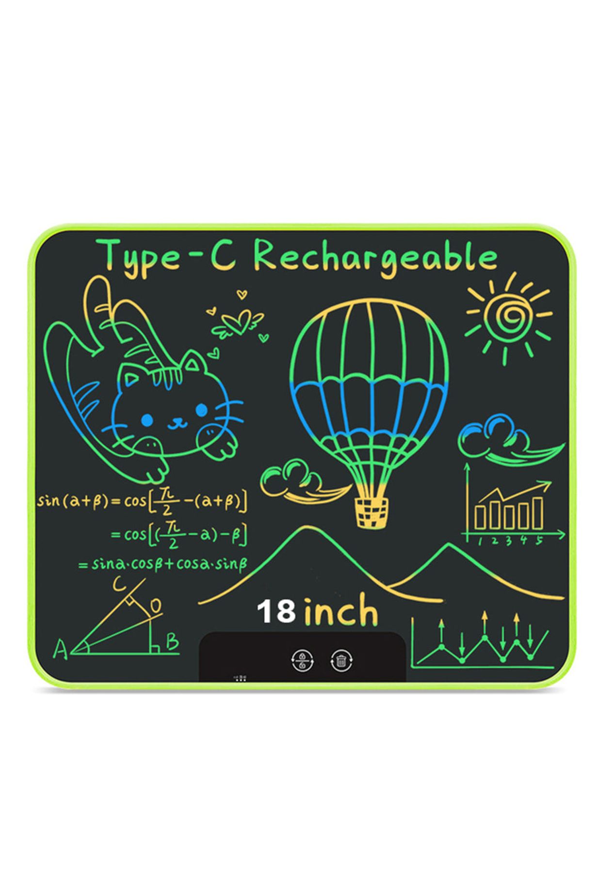 Product Description: The drawing tablet creates colored lines of different thicknesses, just like writing and drawing on paper, according to the hard object you press with a stylus, fingernail, or any hard object. Click the erase button on the drawing tablet to clear the screen content in a second. Press the erase button to clear the screen content, and after unlocking, the pattern can be erased.This writing pad is a great educational learning toy that fits easily into a backpack and you can use it in your car, plane, or anywhere. It can be used as a doodle board, drawing board, sketch, writing board, etc.?Product Specification:Material: ABSColor: yellow / blackHandwriting: monochrome / colorfulScreen: 18 inchBattery Information: 300mAhCharging Time: 2 hoursUsage Time: half a yearSize: 320 x 445 x 14 mm Age: 3+?Package Inclusion:1x Writing Board1x Pen 1x Charging Cable