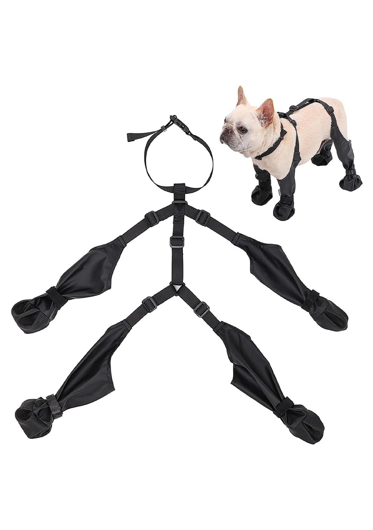 Product Description: Protect your furry friend's paws with These Waterproof Dog Boot Leggings - the ultimate paw protectors for all seasons. These breathable dog booties are designed with adjustable straps, ensuring a secure fit that prevents the shoes from slipping off.Crafted for easy wear and maximum comfort, these dog boot leggings feature an elastic collar connector and a super soft polyester material that your dog will love. Say goodbye to lost boots, thanks to the high-quality construction.Designed to match the natural shape of your dog's legs, these boot leggings provide protection against cold drafts. They are easy to put on and take off, featuring a back-to-back design that prevents slipping and twisting.The elasticized collar connectors at the back of all four leggings ensure a snug and secure fit, keeping the booties in place and offering a convenient and comfortable wearing experience.Keep your dog's paws shielded from cold, snow, and rough surfaces with this dog boot leggings. Suitable for different heights and weights, these leggings are ideal for most breeds, big or small, providing optimal protection.Product Specification:Color: BlackMaterial: PolyesterSmall Size Weight: 190g Medium Size Weight: 200gLarge Size Weight: 220gSize: Small, Medium, LargeFunction: Waterproof Outdoor Dog Boot LeggingsPackage Inclusion:1 x Dog Boot Leggings