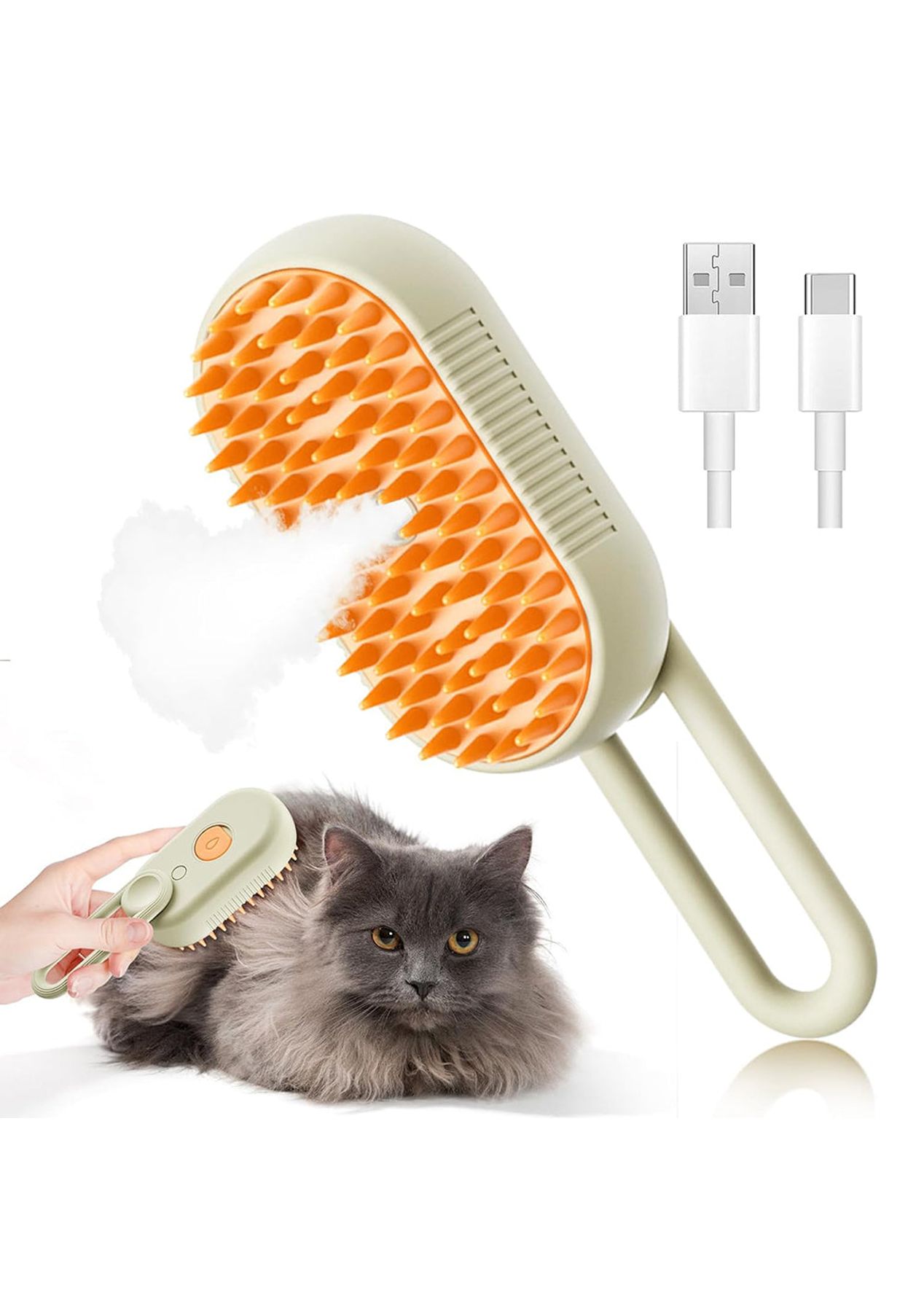 Product Description: This cat steam brush is a must-have addition to your pet care routine, combining hair removal, cleaning, and massaging functions to keep your cat looking and feeling great.Steamy cat brush can say goodbye to static electricity and effortlessly remove dust and dirt from your pet's fur. simply add water, detergent, or softener to the water tank for a thorough combing experience.The smooth rounded teeth head provides a better massage experience, while the silicone brush teeth effectively stick to and remove fallen hair. Pet steam brush the tapered spiral design easily tackles messy hair and is tough enough to handle any hair type.Steam brush for cats features a rotating handle that allows you to easily brush all areas of your cat. The removable steamy pet brush head makes cleaning a breeze, and its lightweight design ensures comfort during extended grooming sessions.Cat brush for shedding come with USB charging cable, rechargeable, charge for 20-30 minutes needed, If it is fully charged, it will turn off the light. Light weight and portable, it's manageable and doesn t bother your cat, easy to use and clean.?Product Specification:Color: White, KhakiMaterial: PPPower: 5V 1ABattery Capacity: 150mAhWeight: 210gSize: 12 x 6.5 x 4.5 cmFunction: 3-in-1 Cat Steamy Brush with Spray Design?Package Inclusion:1 x Cat Steamy Brush1 x USB Charging Cable 1 x Manual