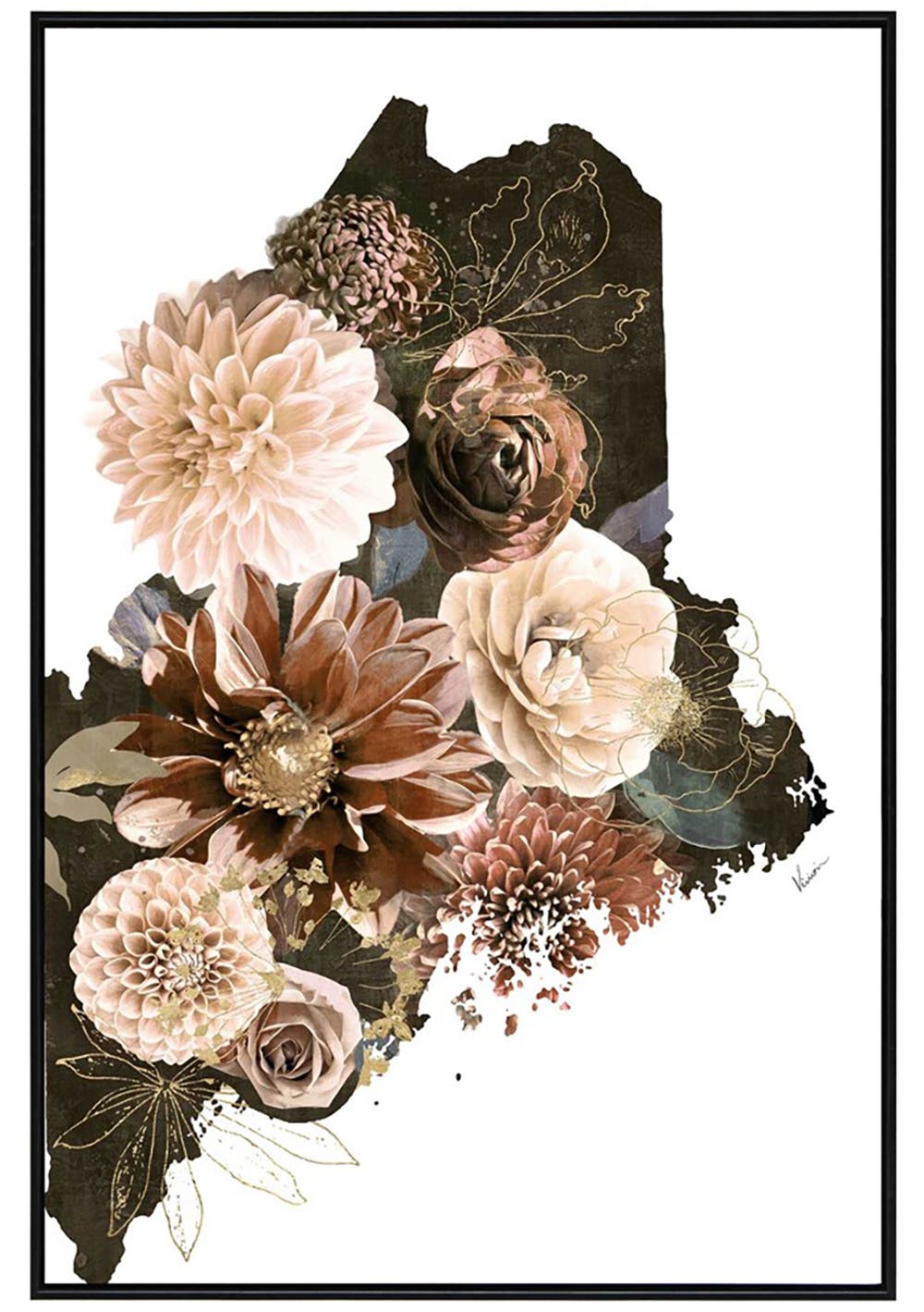 Bouquet Ochre Canvas W/Black Frame 800 X 1200mm