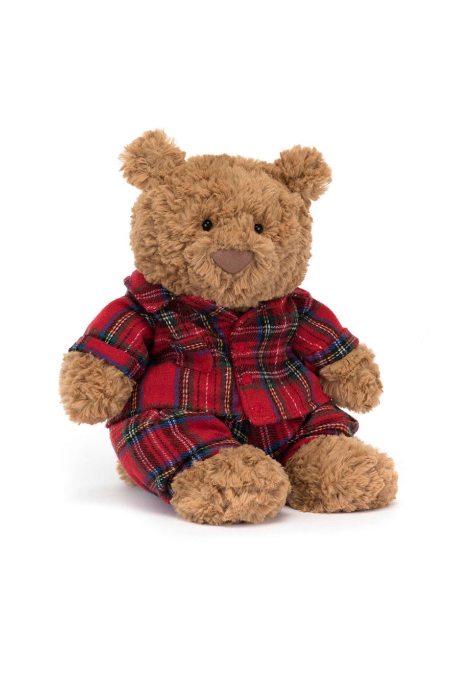Bartholomew Bear Bedtime is ready to snooze – just look at that tousled gingerbread fur! Bartholomew wears removeable PJs with rolled tartan cuffs and embroidered buttons. There's even a gap for his little tail, so he can hibernate in comfort!