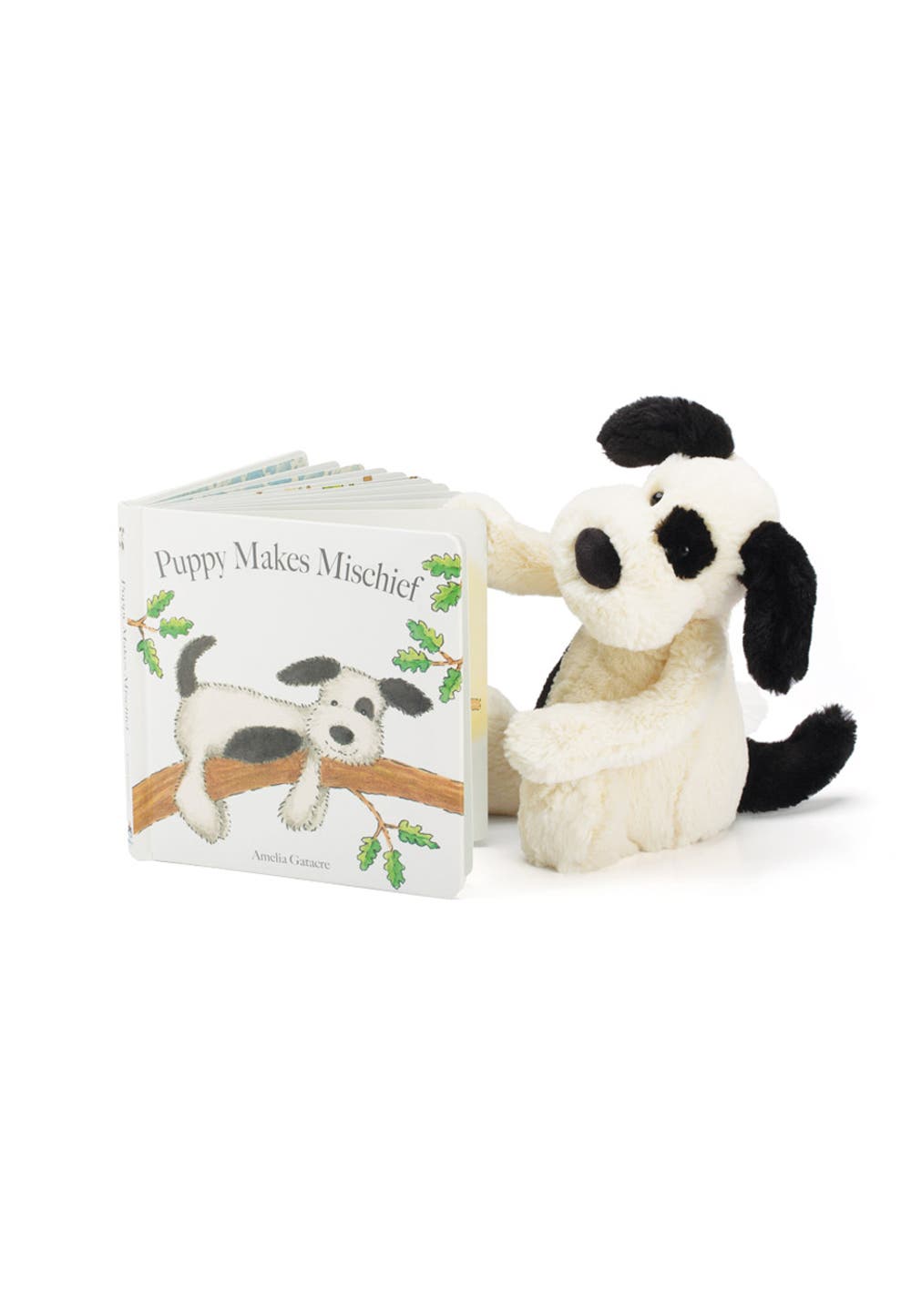 Jellycat - Puppy Makes Mischief Book (Bashful Blk&Cream Puppy)