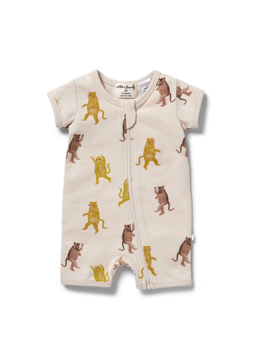 This boyleg short sleeve zipsuit is a must have! Made from a beautiful blend of organic cotton and elastane, this zipsuit is soft and gentle on your little ones skin. Featuring a full length zip through front for easy dressing, with a protective neck facing zip cover. Not only super cute but super comfortable too! Key Features: Round neckline with concealed zipper for safety Short sleeve, boyleg length One-way zip opening for easy changes Made from organic cotton Wrapped in a compostable bag Packaged in a reusable, luxe cotton drawstring bag with gold foil detailing DETAILS 95% organic cotton, 5% elastane Machine washable
