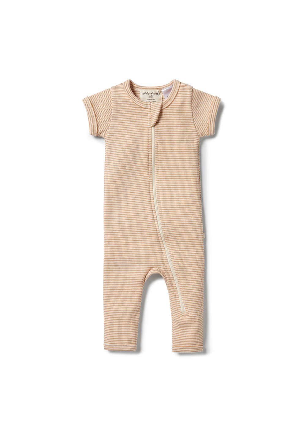 Wilson & Frenchy - Organic Stripe Rib Zipsuit - Toffee
