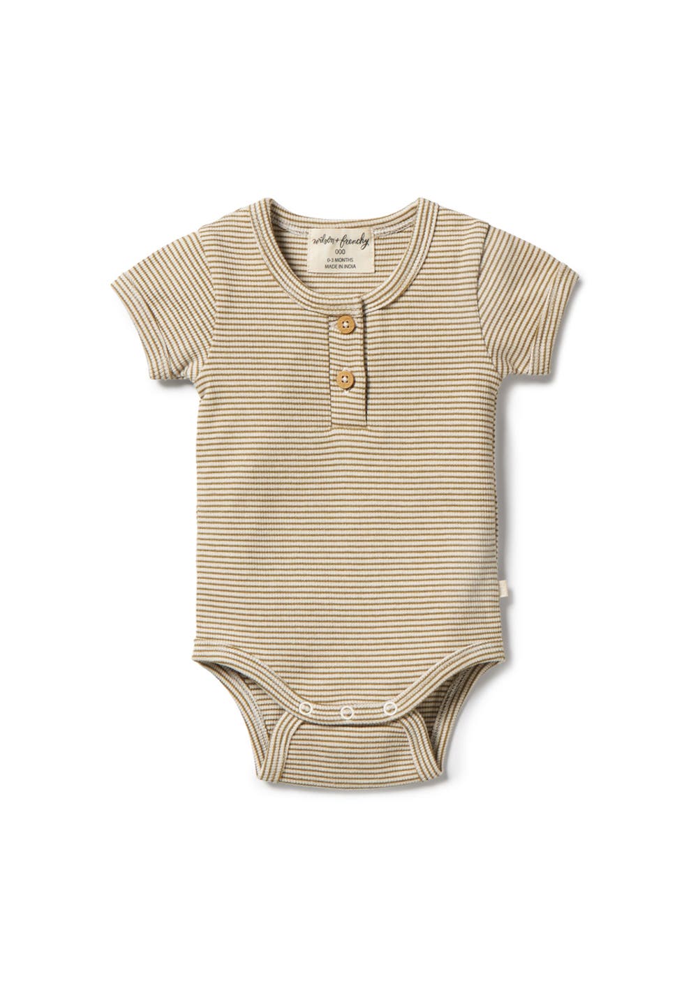 Wilson & Frenchy - Organic Stripe Rib Henley Bodysuit - Leaf