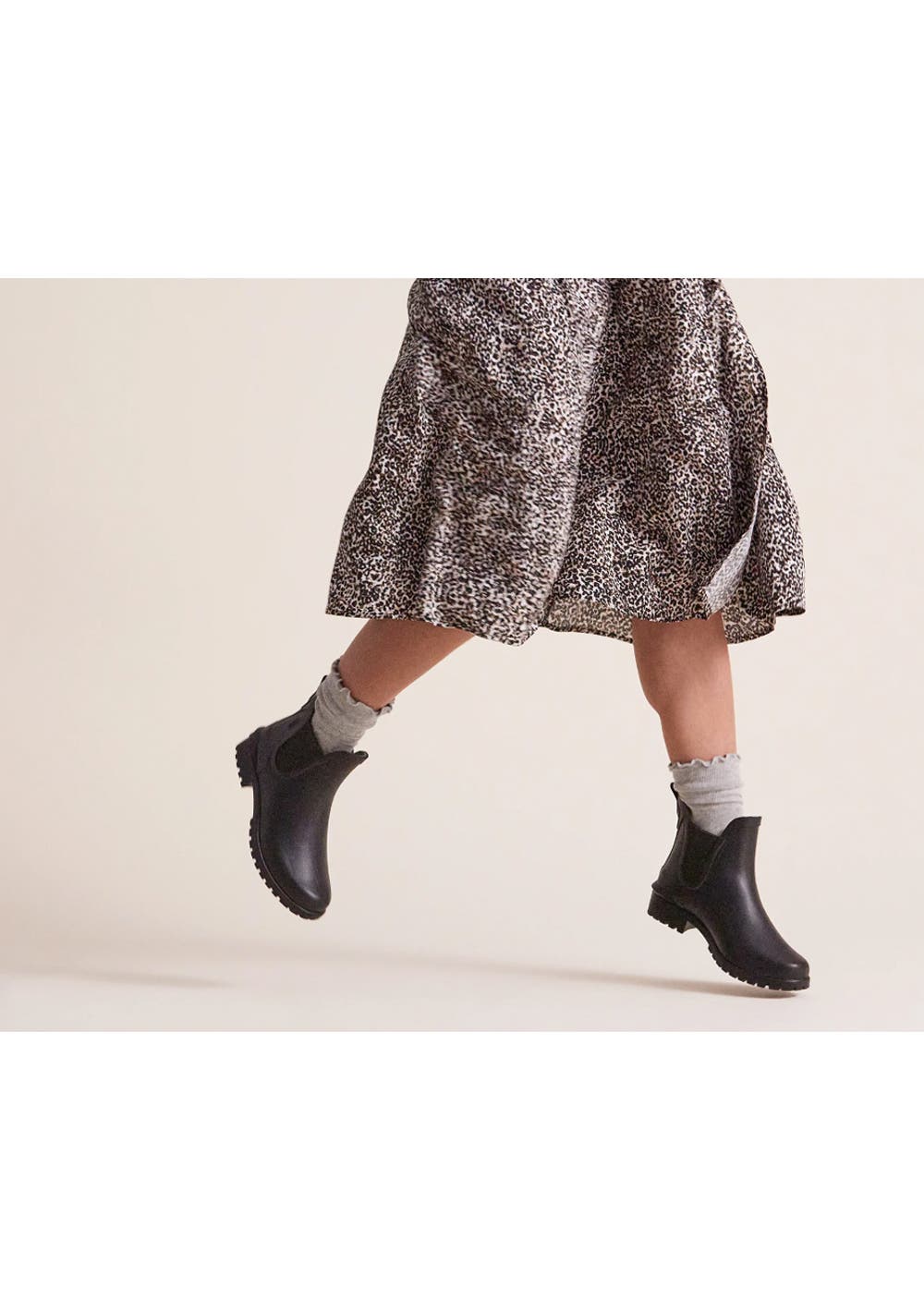 Explore the Keds Rowan Rain Boot: a sleek chelsea boot design crafted for practicality. From the heel pull tab for easy wear to the sturdy no-slip grip sole, every detail ensures functionality. Its standout feature? The elastic sides boasting flexibility and waterproof protection. With a clever rubber layer, they offer full stretch without compromising on shielding from splashes. Say hello to dry feet and effortless style in our putty grey Keds rain gumboot. Waterproof rubber upper Chelsea-style rain boot Elastic side gores and pull tabs for easy on-and-offs Soft and breathable twill lining 1” heel Softerra™ footbed Durable lugged rubber outsole Care instructions: spot wash, air dry only