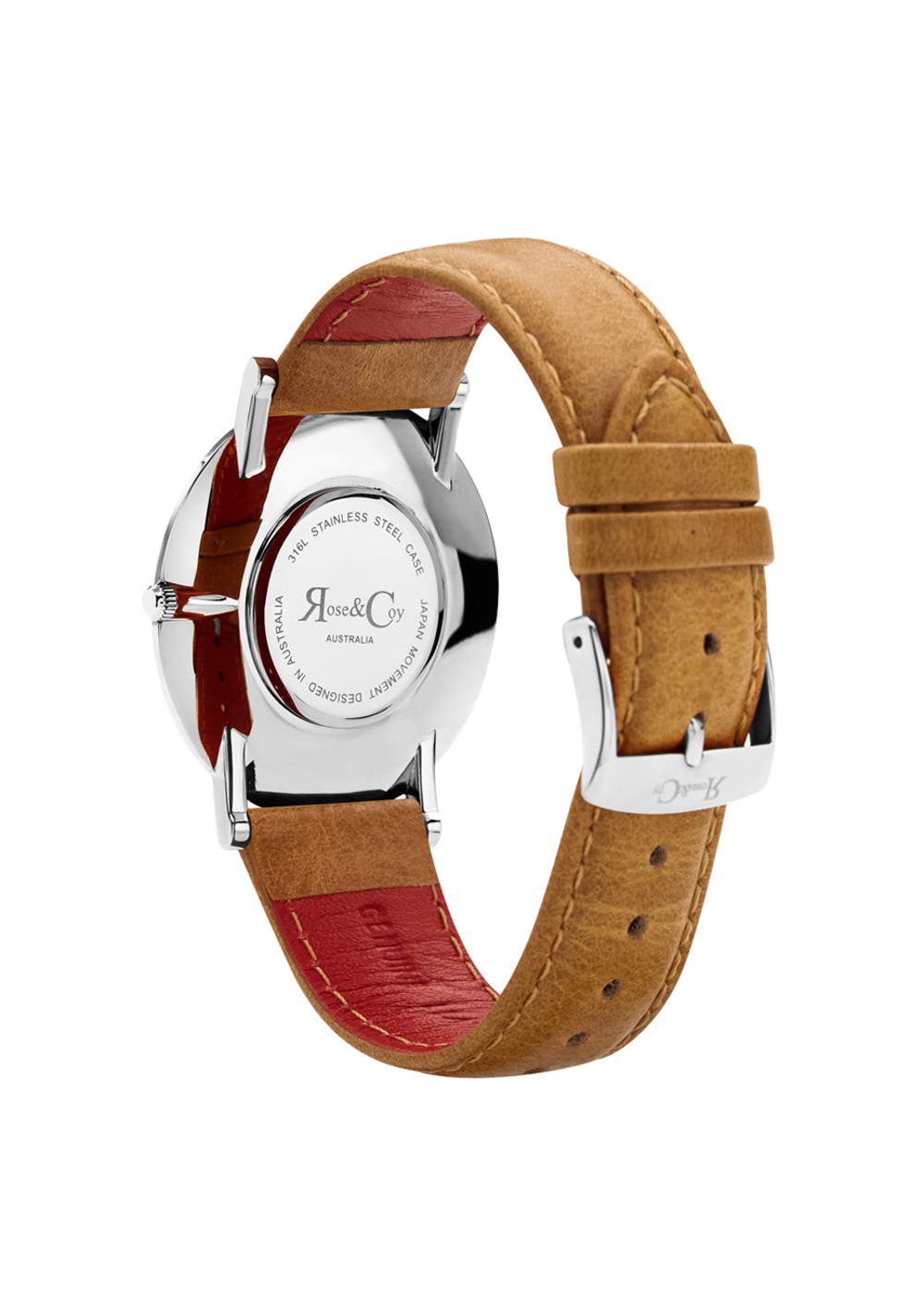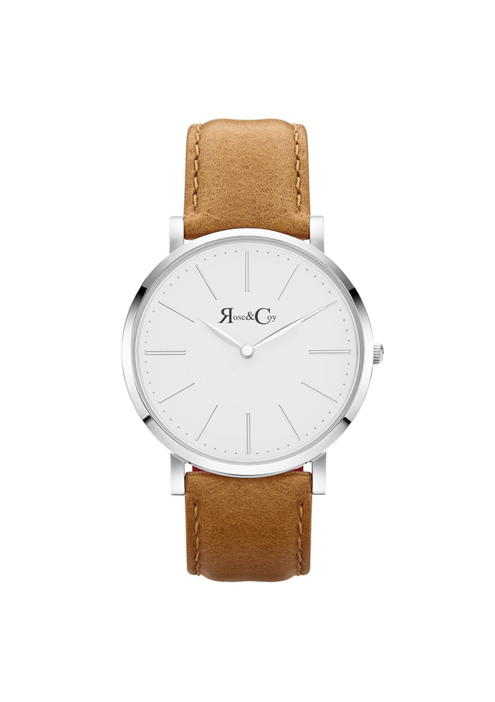 Rose & Coy Pinnacle Ultra Slim 40mm Silver | Tan Leather Watch