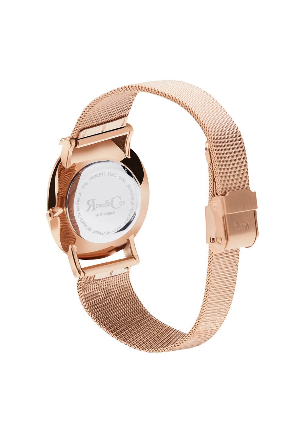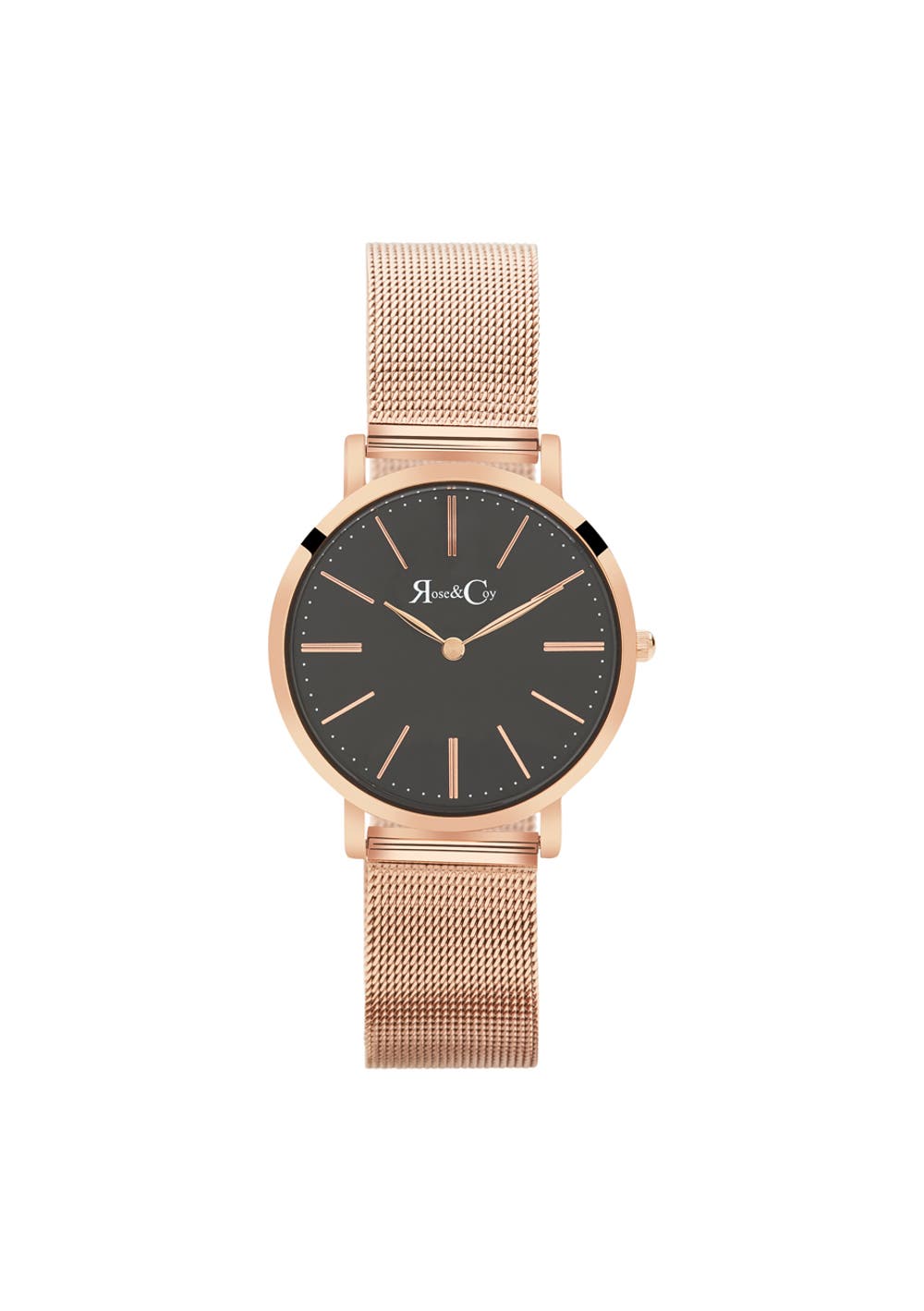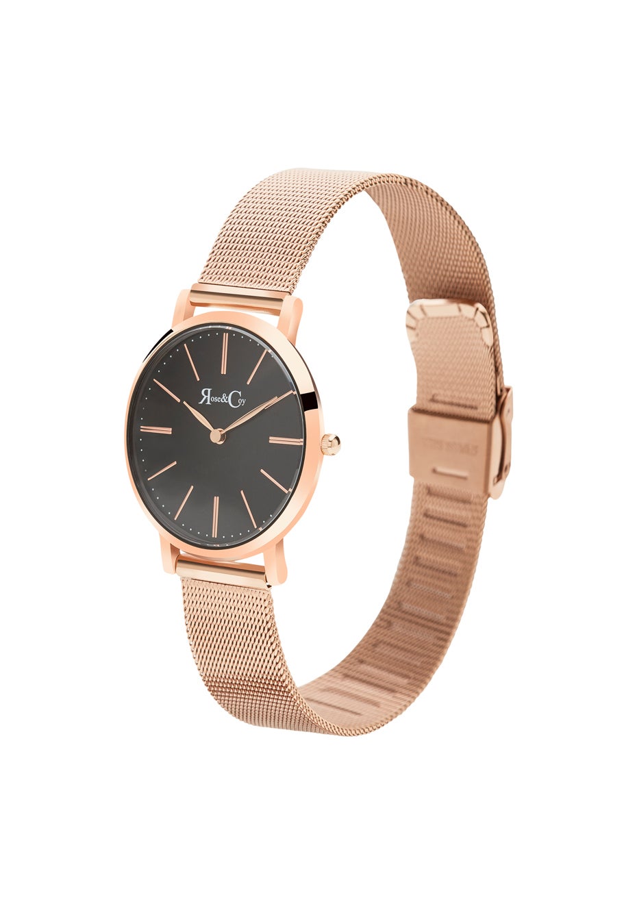 Rose & Coy Mini Pinnacle Ultra Slim 34mm Rose Gold Black Dial | Mesh Strap Watch