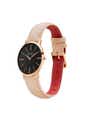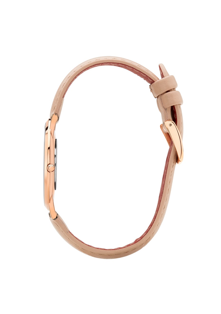 <p>This ultra-slim, luxury timepiece features an incredibly thin 6.0mm hand polished stainless steel case finished in rose gold.</p> <p>Careful attention has been paid to every minute detail of this stunning watch, including the white contract stitching on the peach Italian leather strap, with feature red leather inner sole.</p> <p>The domed mineral crystal lens is perfectly complimented by the black dial with rose gold indices and retro rose gold hands.</p>