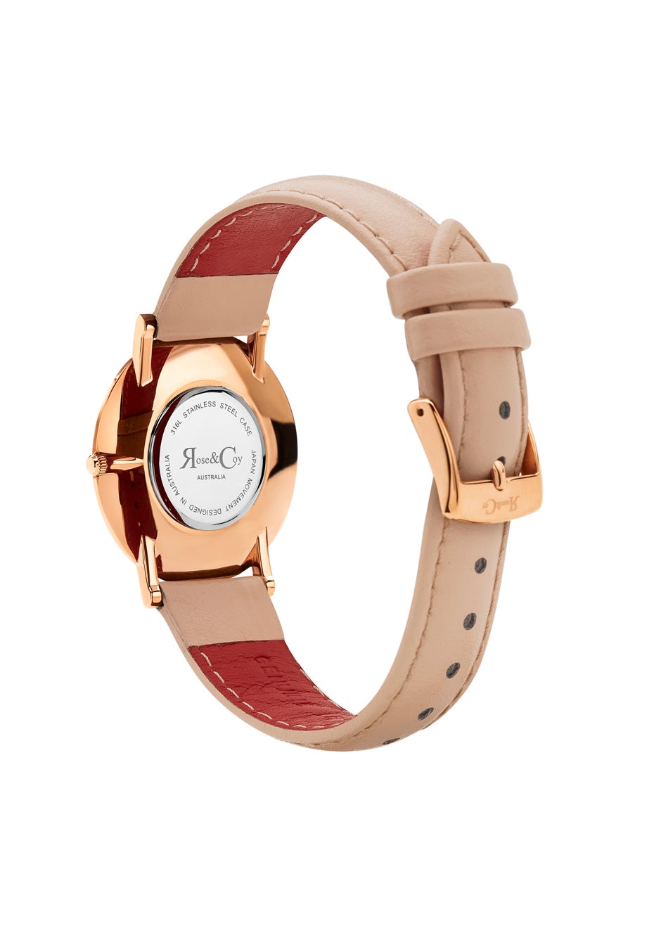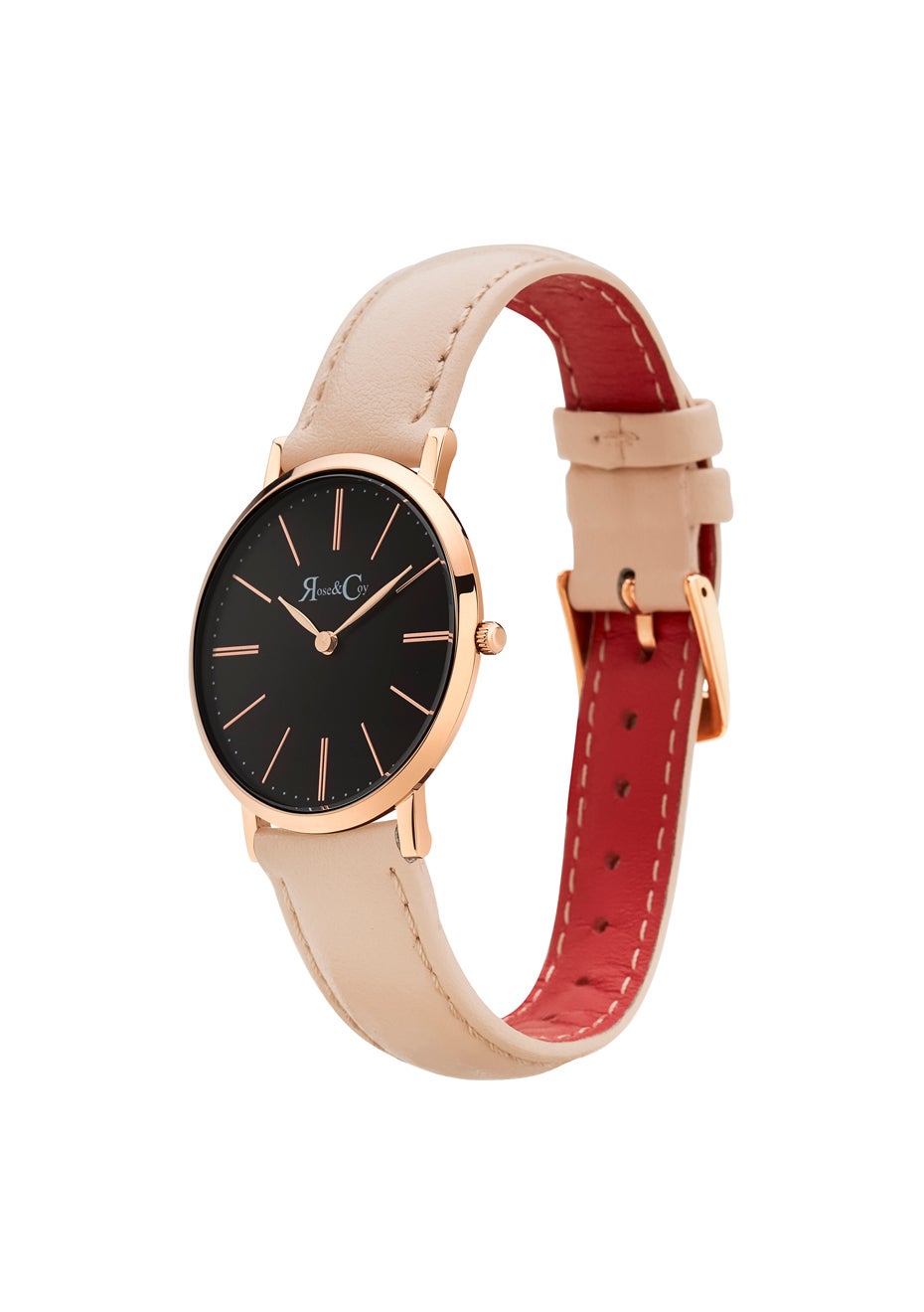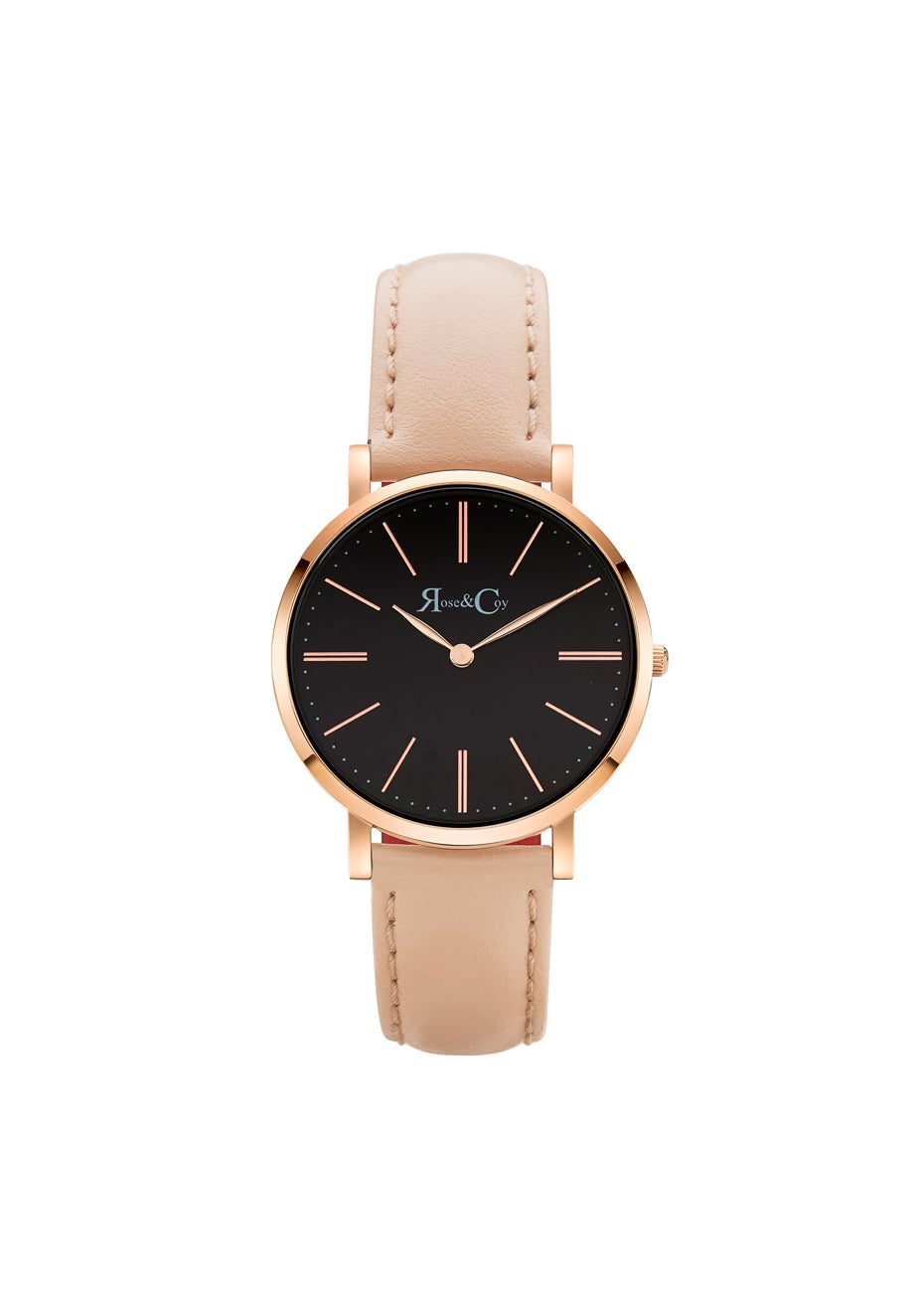 Rose & Coy Mini Pinnacle Ultra Slim 34mm Black Dial | Peach Leather Watch
