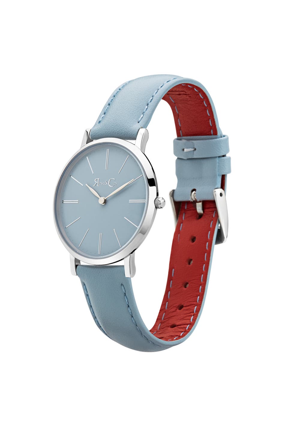 Rose & Coy Mini Pinnacle Ultra Slim 34mm Silver | Sky Blue Watch
