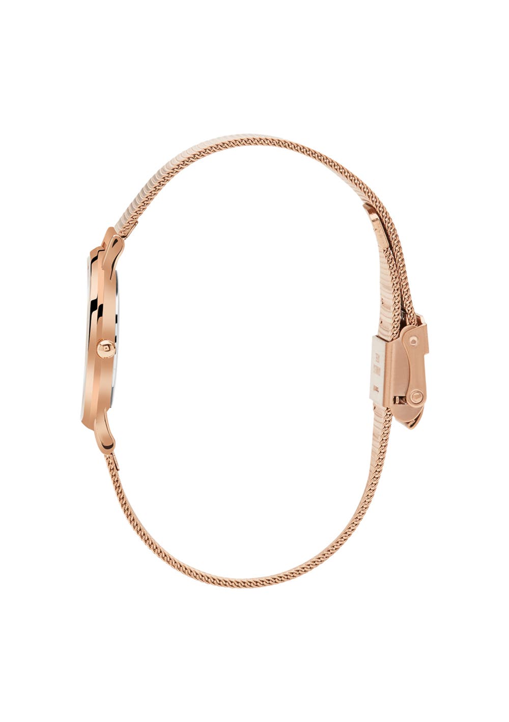 <p>Careful attention has been paid to every minute detail of this stunning watch, from the domed mineral crystal lens covering the brushed china dial with retro rose hands and rose gold mesh strap.</p>