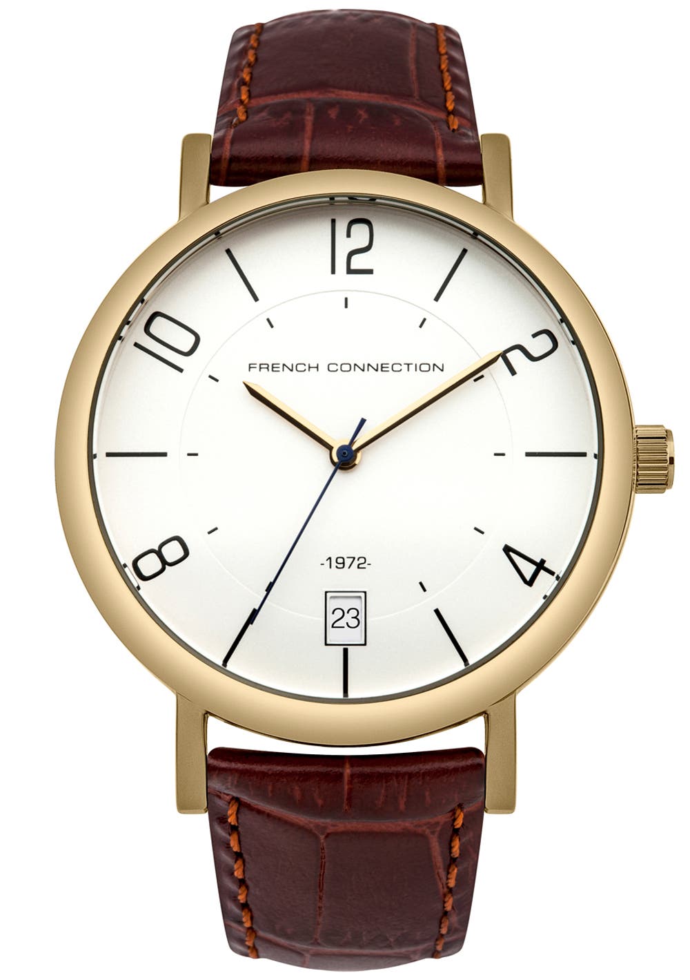 Dress your wrist with one of French Connection's modern watches. A must-have accessory, our timepieces are contemporary essentials that will elevate any outfit. From classic leather straps to sleek stainless steel bracelets, each watch offers a premium look and feel, allowing you to tailor your style to any outfit and occasion. Case Material: Stainless Steel Dial Diameter: 42mm Functionality: Plain 3-Hand Movement: Quartz Special Features: Water Resistant Strap Type: Genuine Leather Strap Width: 18mm Water Resistance: 30 m