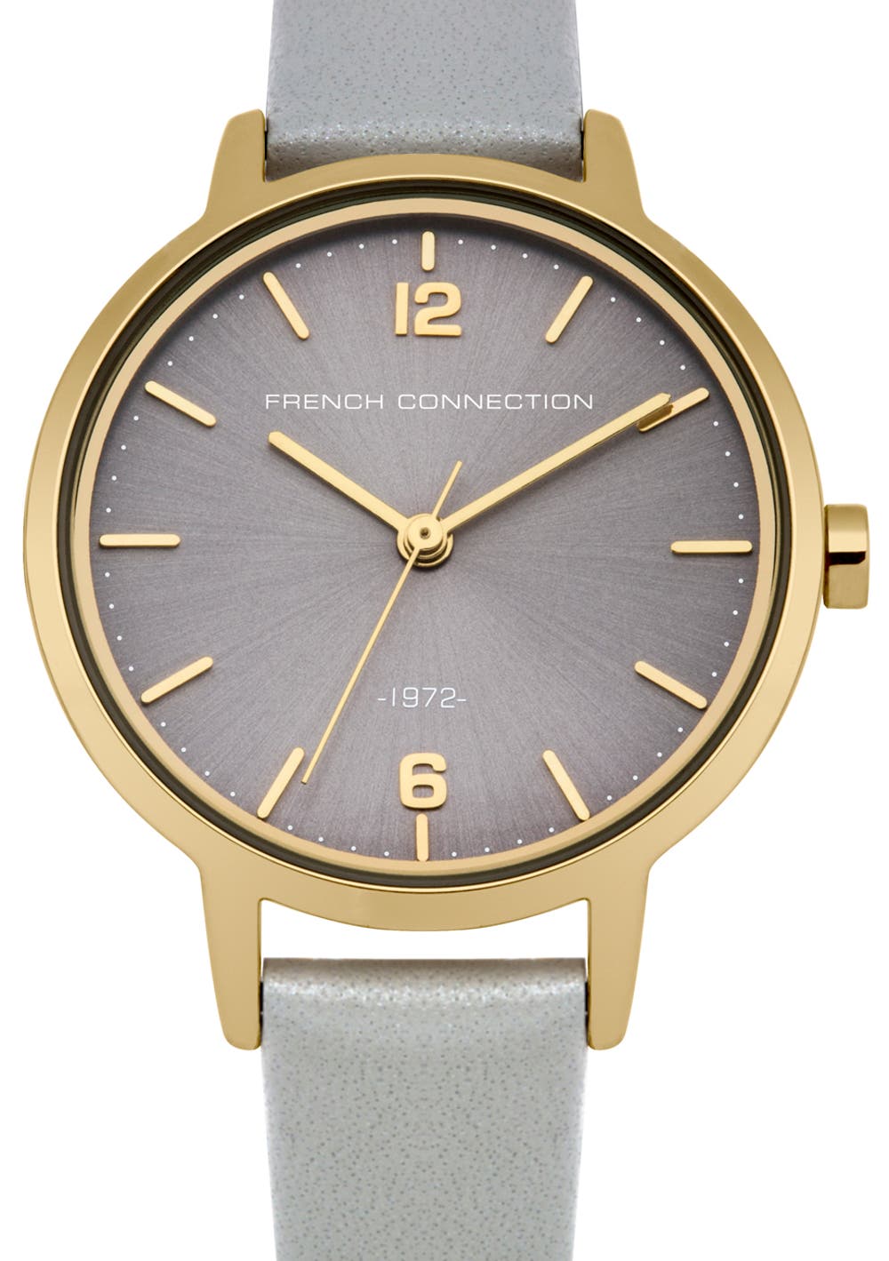 French Connection Ladies Grey Pearlised Leather / Grey Dial / Gold