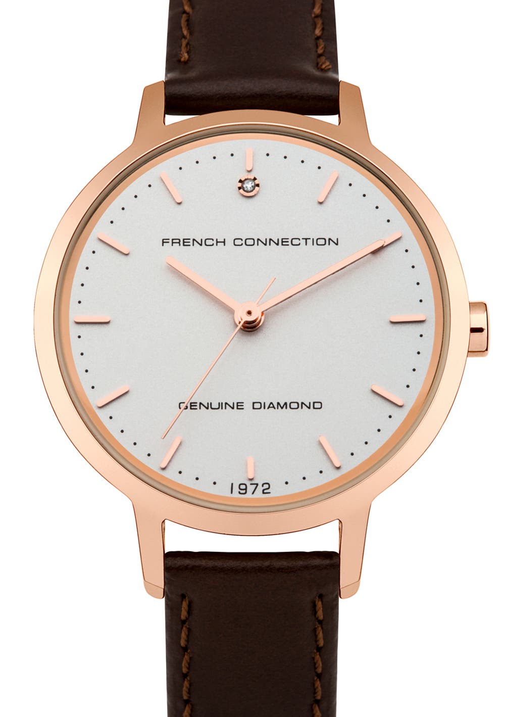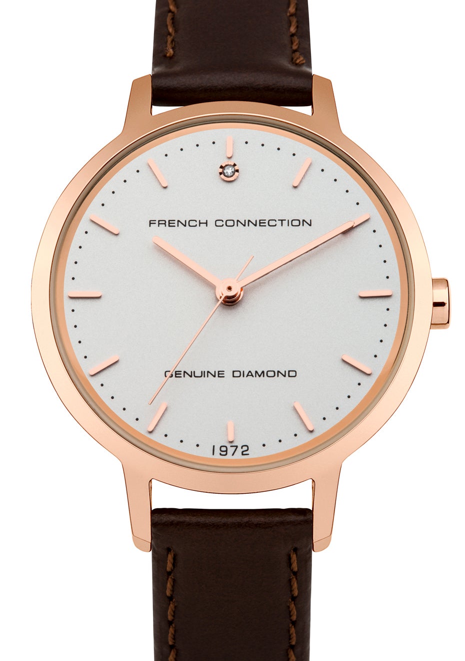 Dress your wrist with one of French Connection's modern watches. A must-have accessory, our timepieces are contemporary essentials that will elevate any outfit. From classic leather straps to sleek stainless steel bracelets, each watch offers a premium look and feel, allowing you to tailor your style to any outfit and occasion. Case Diameter: 30 millimetres Case Thickness: 8 millimetres Band Material: Leather Band Width: 14 millimetres Band Colour: Brown Dial Colour: White Calendar: Does Not Have Date Function Special Features: water resistant Movement: Quartz Water Pressure Resistance: 3 bar