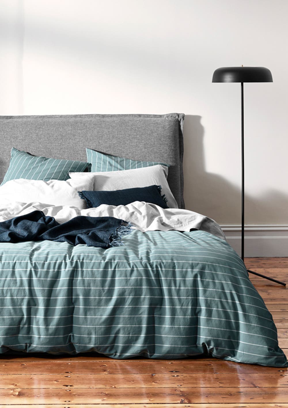The Aura French Stripe Organic Cotton duvet cover in Atlantic is all about mindful design and eco-friendly interiors. We use GOTS certified Turkish Organic Cotton, a naturally robust variety that requires less water to grow without harmful fertilizers or chemicals, woven into a high quality 370 thread count percale fabric. Finished with a light stonewash for an elegant matte look, French Stripe also has a beautifully soft hand feel. Our Duvet Covers & Pillowcases are finished with invisible zippers and are packaged in a reusable fabric bag.