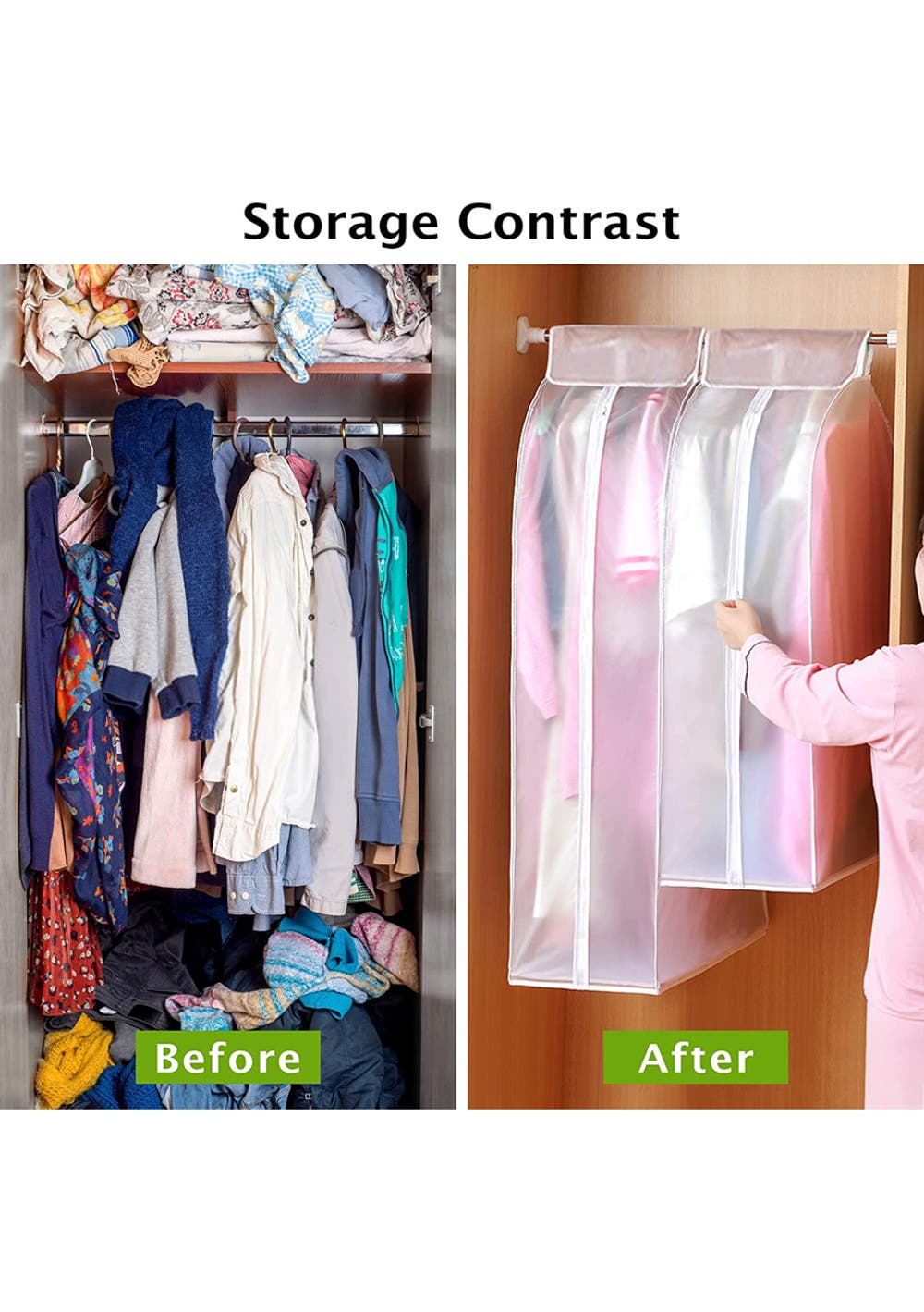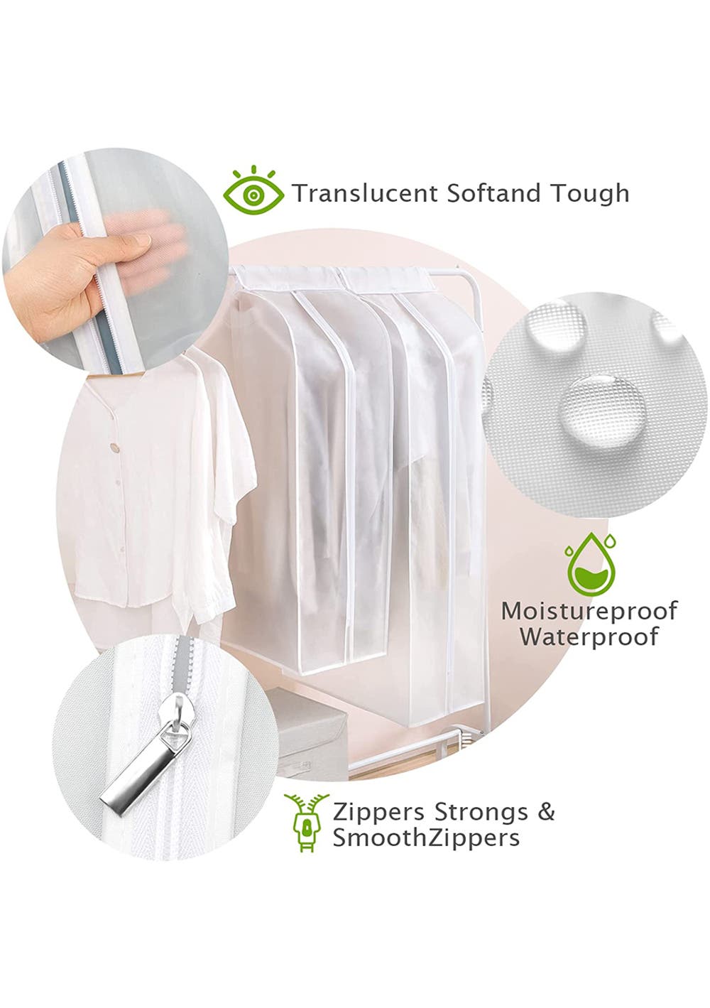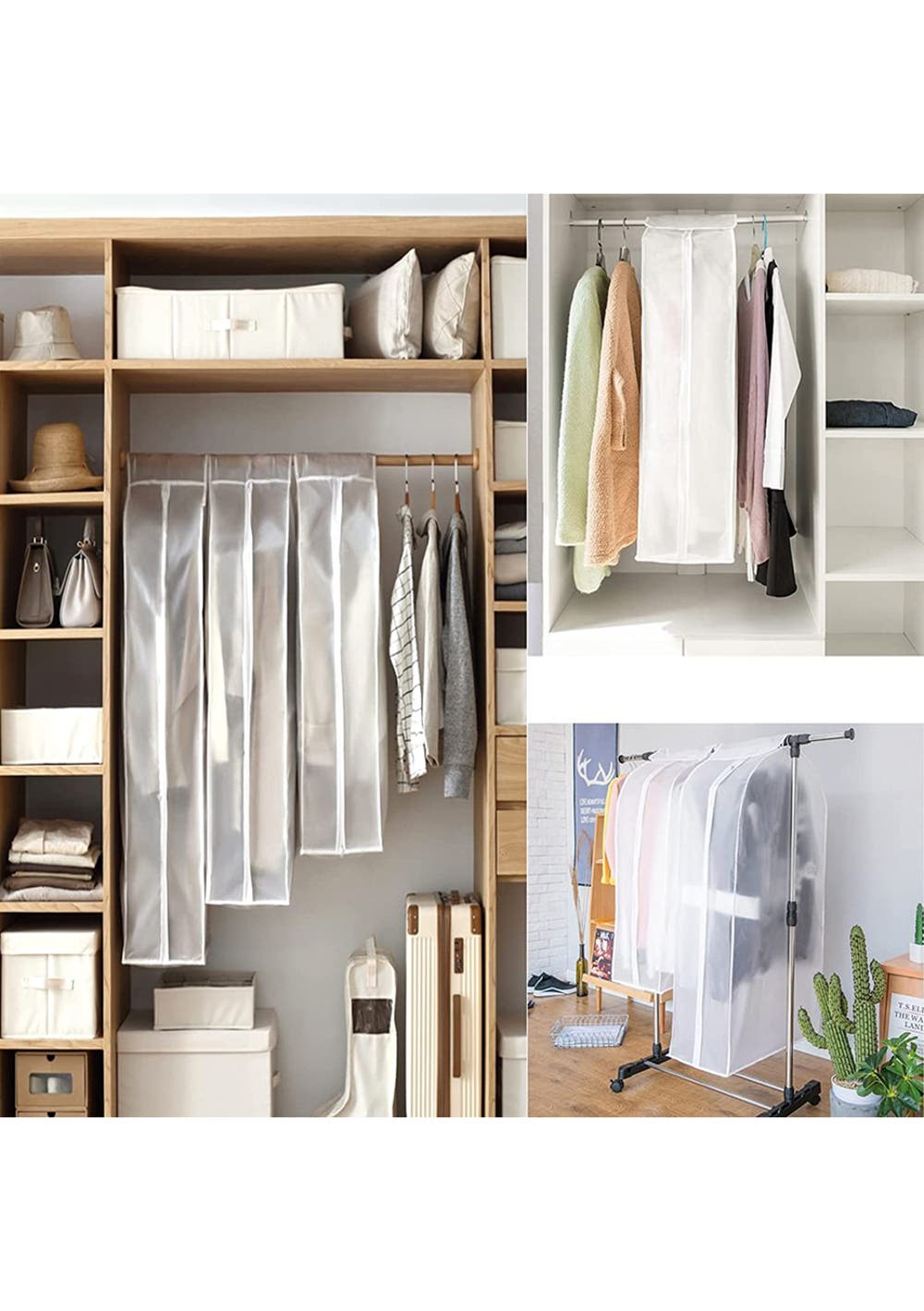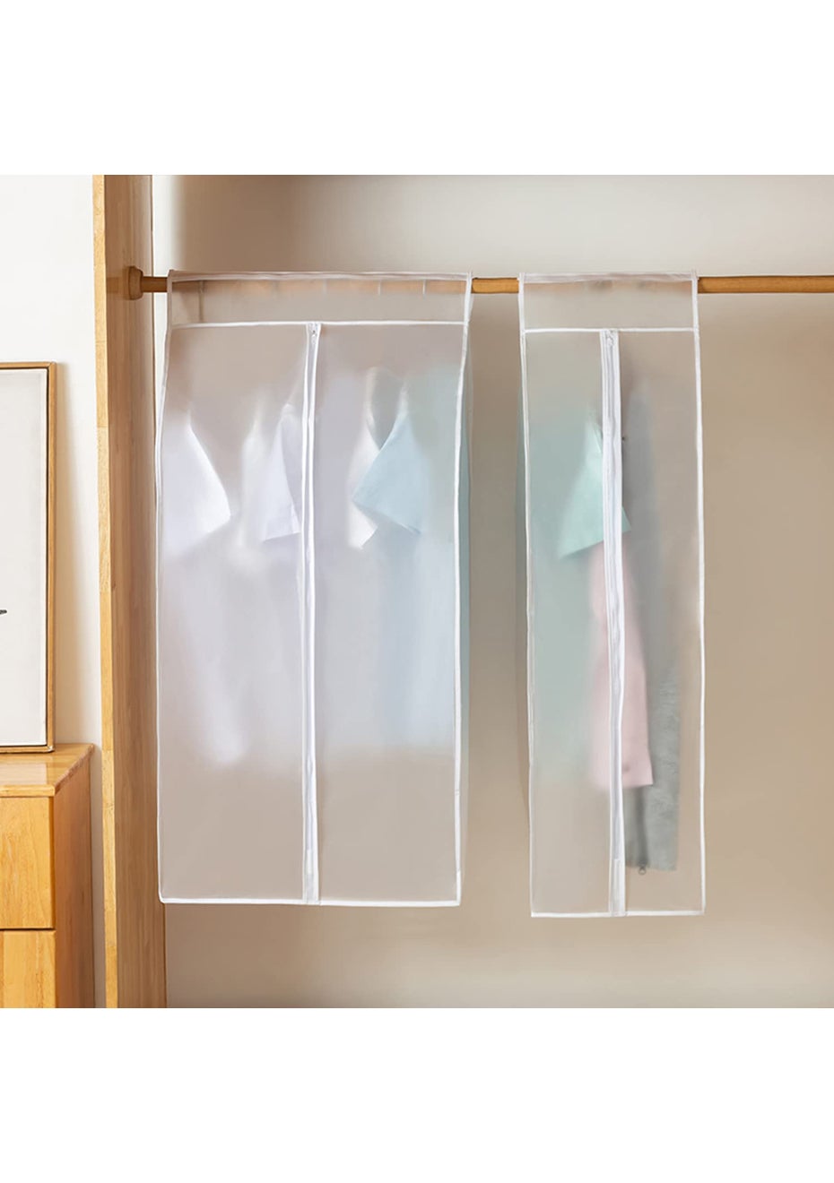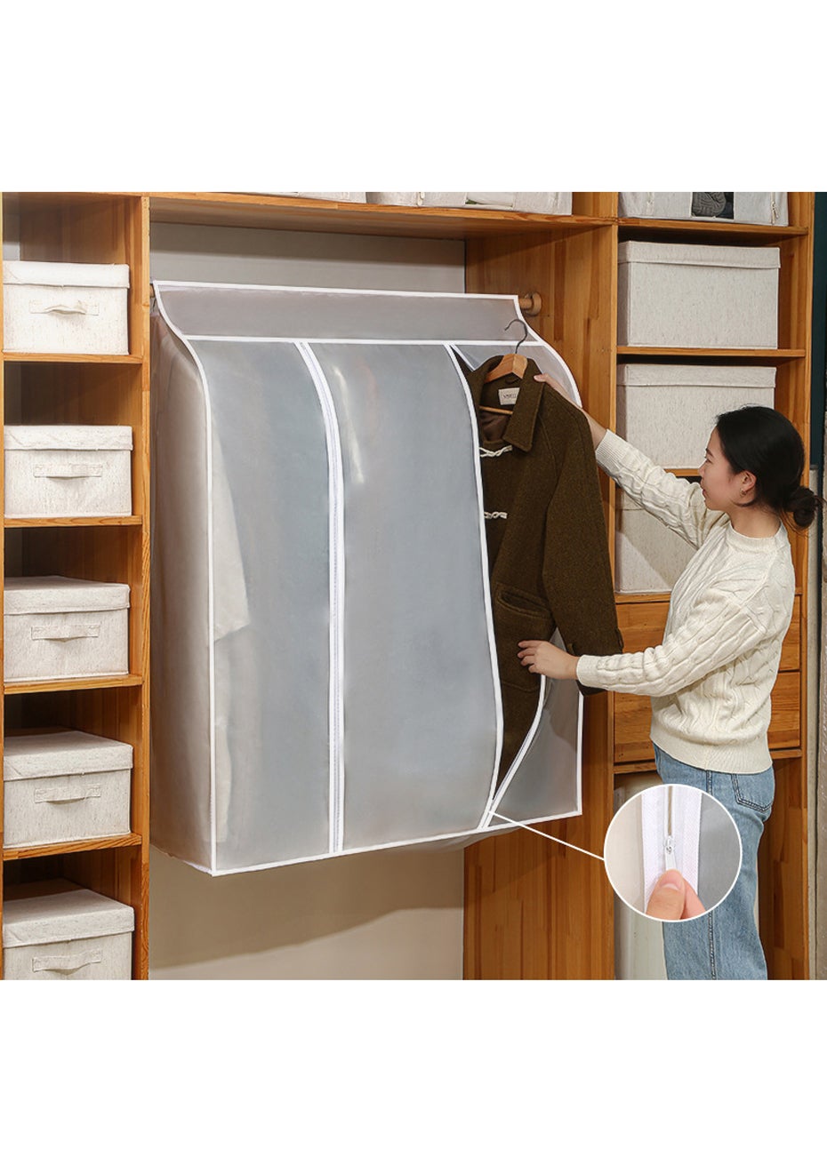 Lightweight Closet Garment Clothes Cover Protector 100×50×90 cm Material: PEVA Product dimensions (LWH): 100×50×90 cm Package dimensions (LWH): 25 x 24 x 3 cm Weight:300 g KEY FEATURES:  PEVA Material -- washable semi-transparent garment cover, moisture-proof, dust-proof, and odorless. keeps your clothes fresh and clean, can be used for a long time. After a period of use, just wipe with clean water to wipe off the dust.  Water-Proof -- full zipper and magic tape top cover can well protect your clothes, prevent such as pet hair, light exposure, humidity from damaging clothing, clean for long term storage.  Semi-Transparent Garment Cover -- You can find the cloth conveniently and quickly without opening the cover bag. Semi-transparent color can protect your clothing from fading if it is hung near natural light.  Easy to Fold -- no hard frame in the garment cover that makes it easy to fold and take for the journey. Suitable for basement, attic, closet, apartment, garage, condo, dorm, clothing shop, and theater.  Package Include  1 x Lightweight Closet Garment Clothes Cover Protector