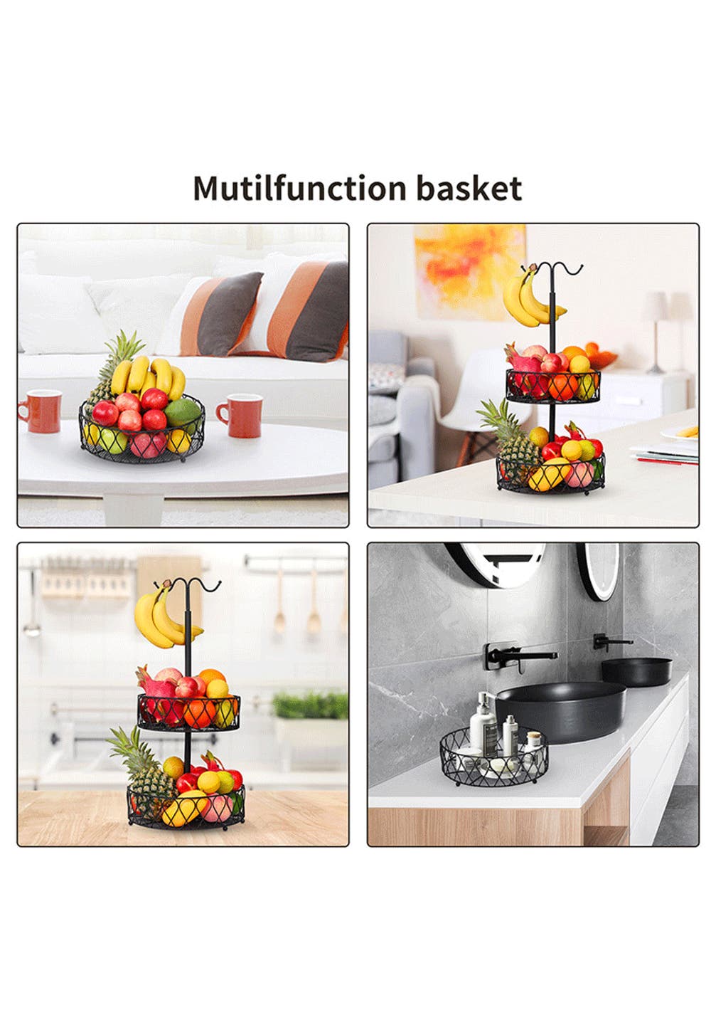 CONVENIENT TO CLEAN - This 2 tier fruit basket is superior in rustproof and durable performances. So that you can clean the basket by wiping with a soft damp towel easily.