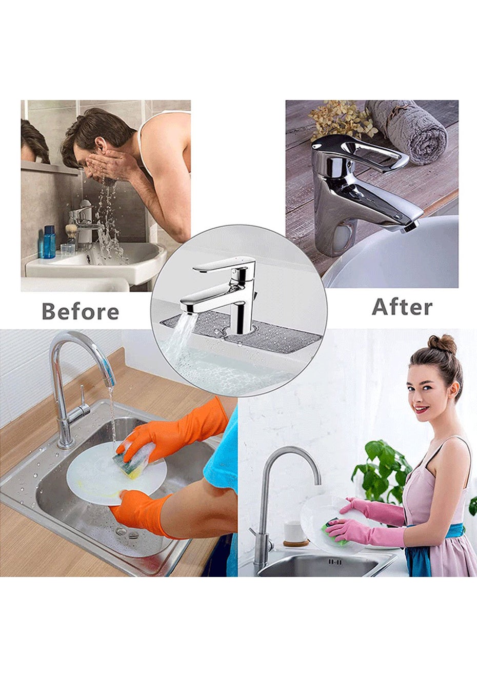 Widely Compatibility Sink Splash Mat: Suitable Size for Nearly All Kinds of Sink for Kitchen, Bathroom and RV (Width Less Than 6.5cm), Light Weight and Durable Faucet Splash Guard Mat.