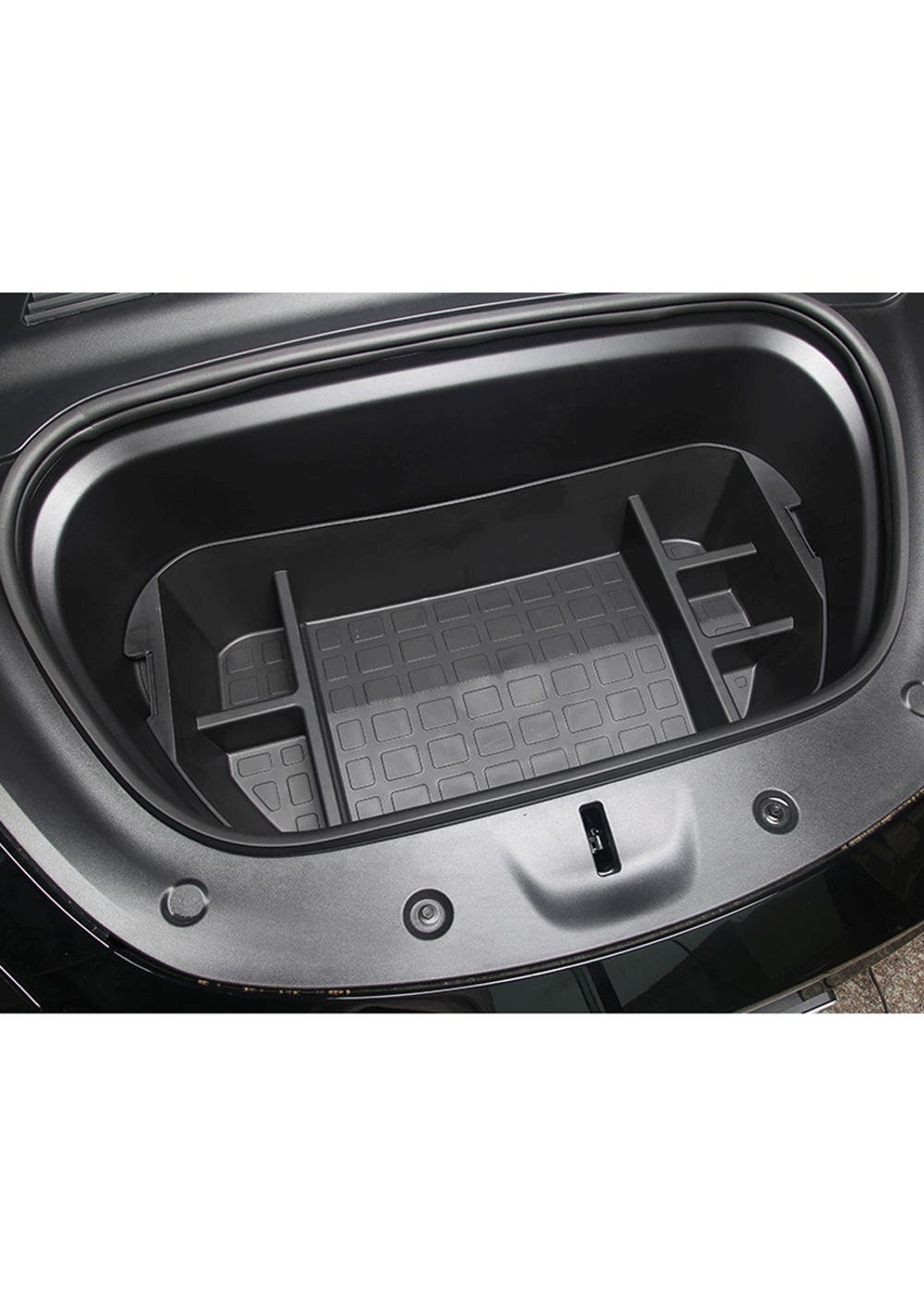 Tesla Model Y Front Trunk Organizer Material: ABS Product dimensions (LWH): 85x39x16cm Package dimensions (LWH): 86x40x18cm Weight: 3.2Kg KEY FEATURES:  New Design 2020-2021 model y trunk organizer with 6 separate spaces.  Effectively protects your trunk interior from messy or damage.  Can storage emergency equipment, charging adapters, cables, pet/kid toys, tools etc.  Can also storage packaged-food, water, soda, beer, wine.  Easy to Install, convenient to lift up or transport without any tools.  Made of quality ABS plastic, sturdy and durable, not easy to bend or deformed.  keep your organizer storage neat and beauty, to protect your frunk interior from damage.  Package Include  1 x Tesla Model Y Front Trunk Organizer