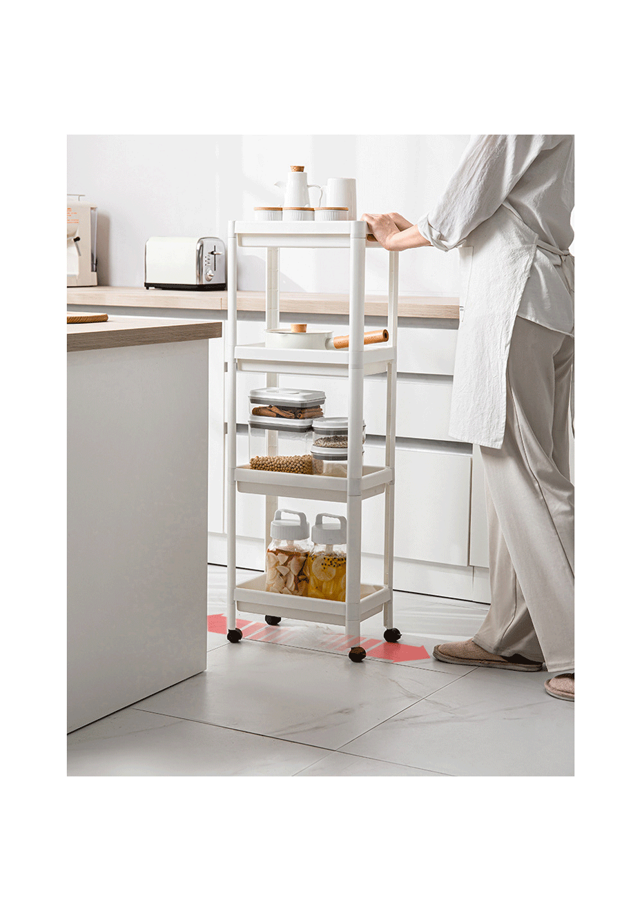 4 Tier Wide Slide-Out Trolley Rack Shelf Organizer
