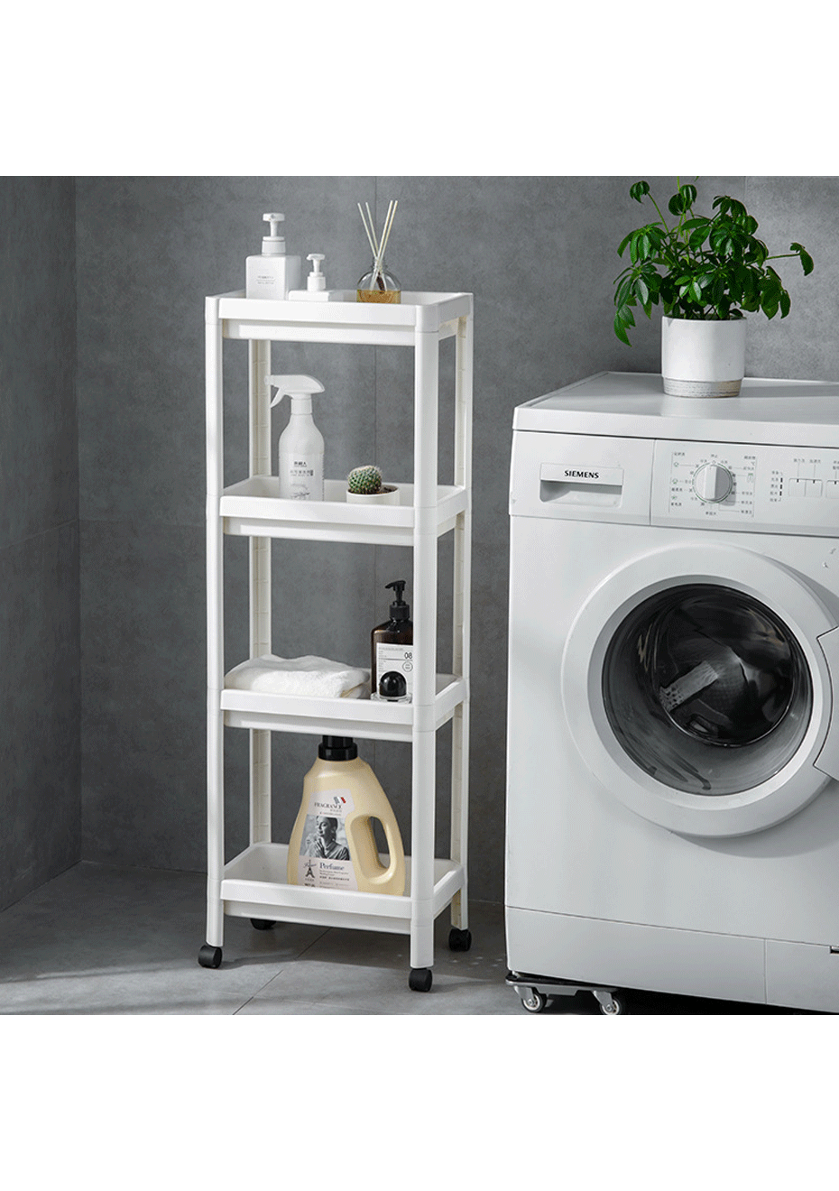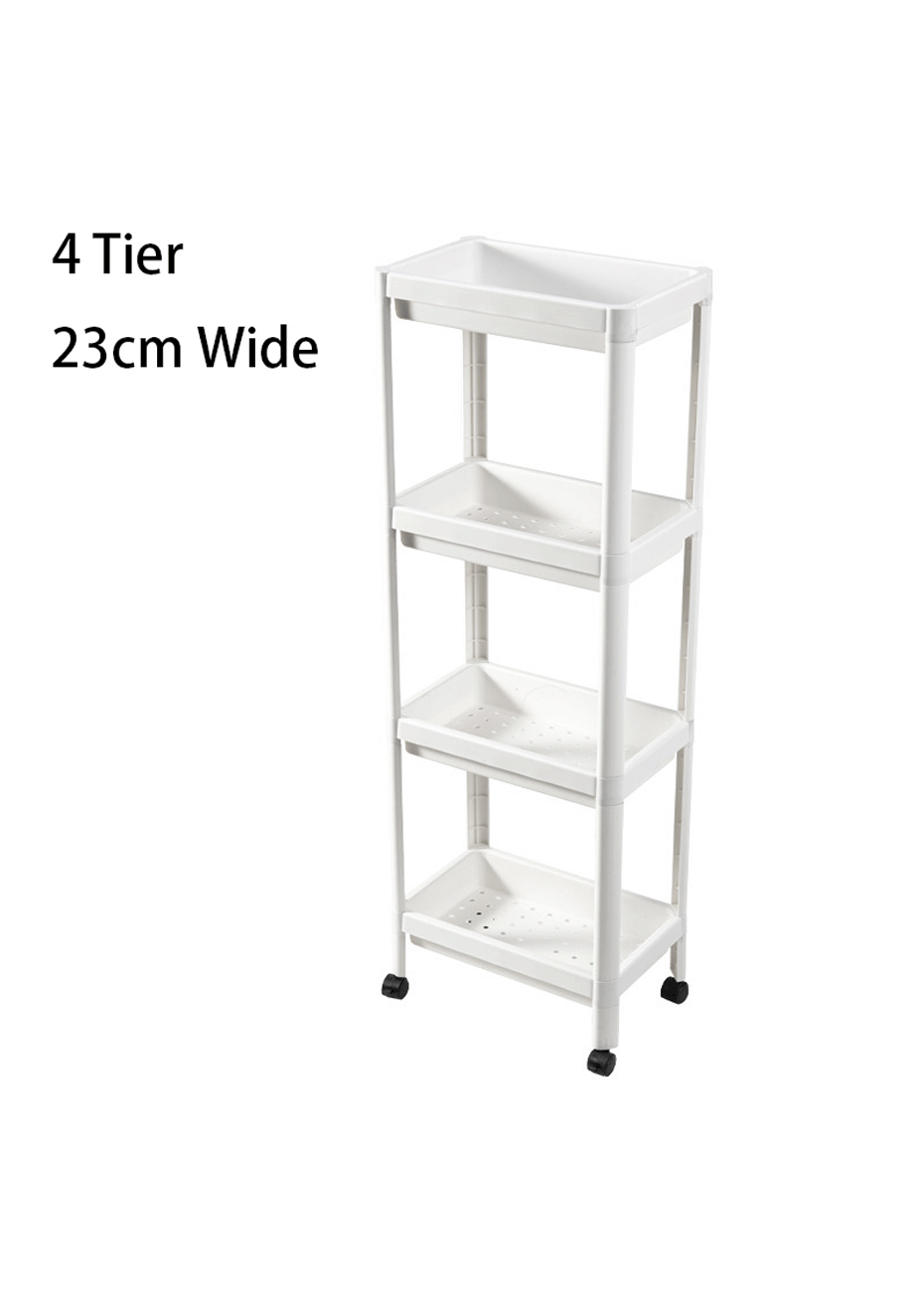 Multi-Purpose Storage: This multi-functional storage cart width is 23cm, which can be widely suited for home narrow space daily storage like bathroom, laundry rooms, kitchen; which can be used to store shower gel, shampoo, towels, cosmetics, toilet paper, detergents, snacks, drinks, fruits, etc.
