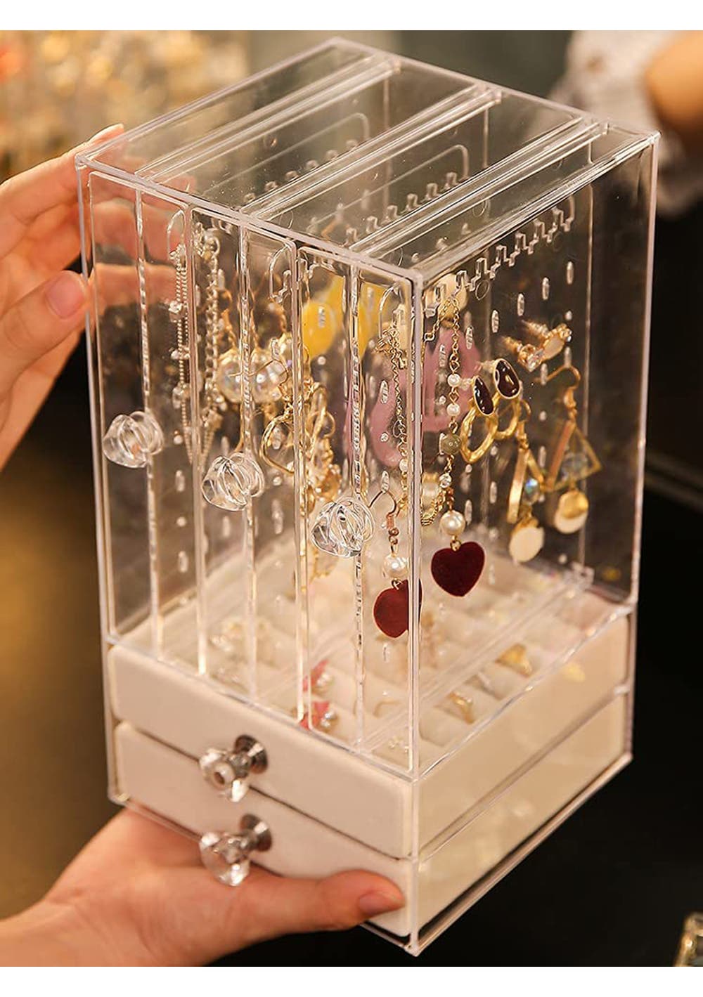 Acrylic Earring Holder and Jewelry Organizer 3 Slots 2 Drawers