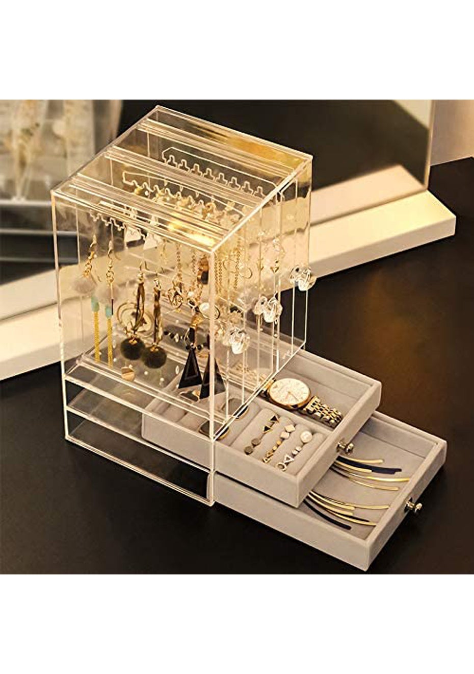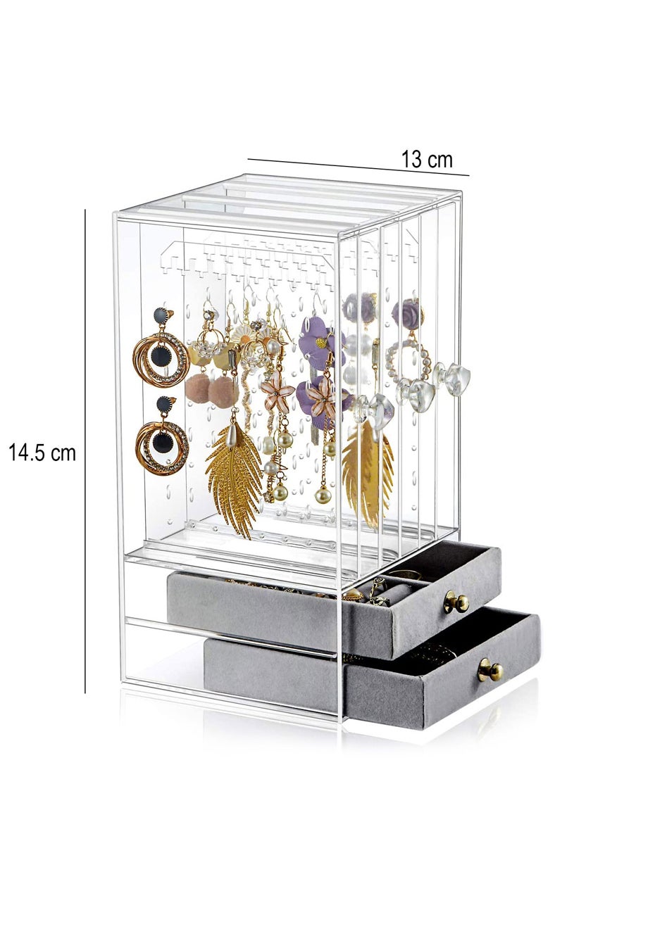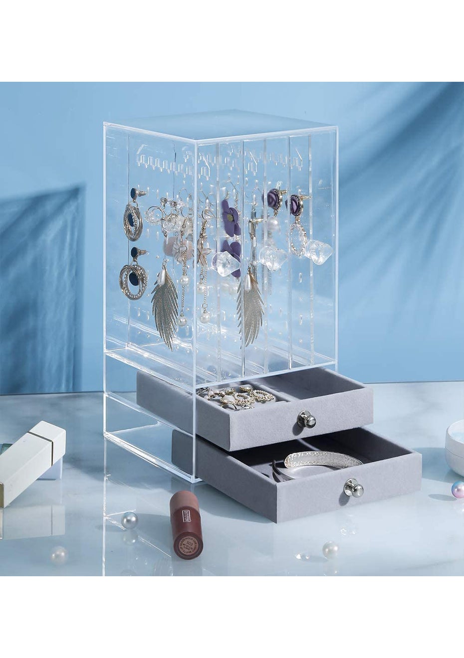 Acrylic Earring Holder and Jewelry Organizer 3 Slots 2 Drawers